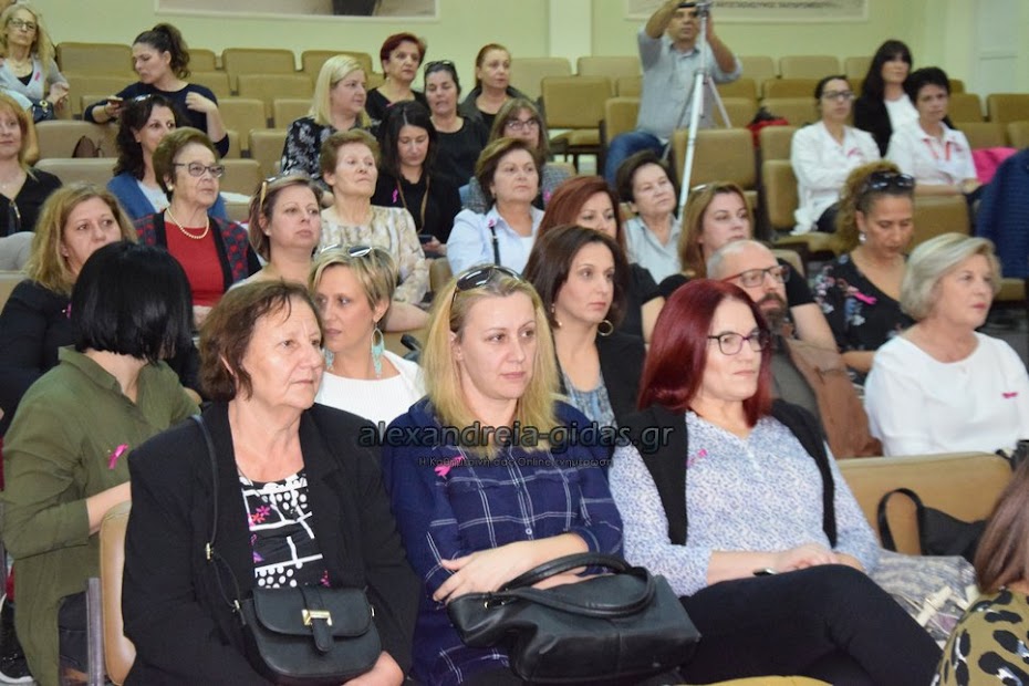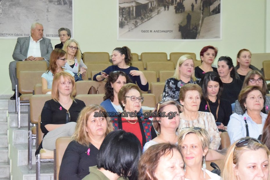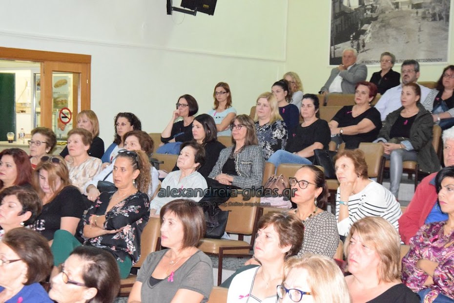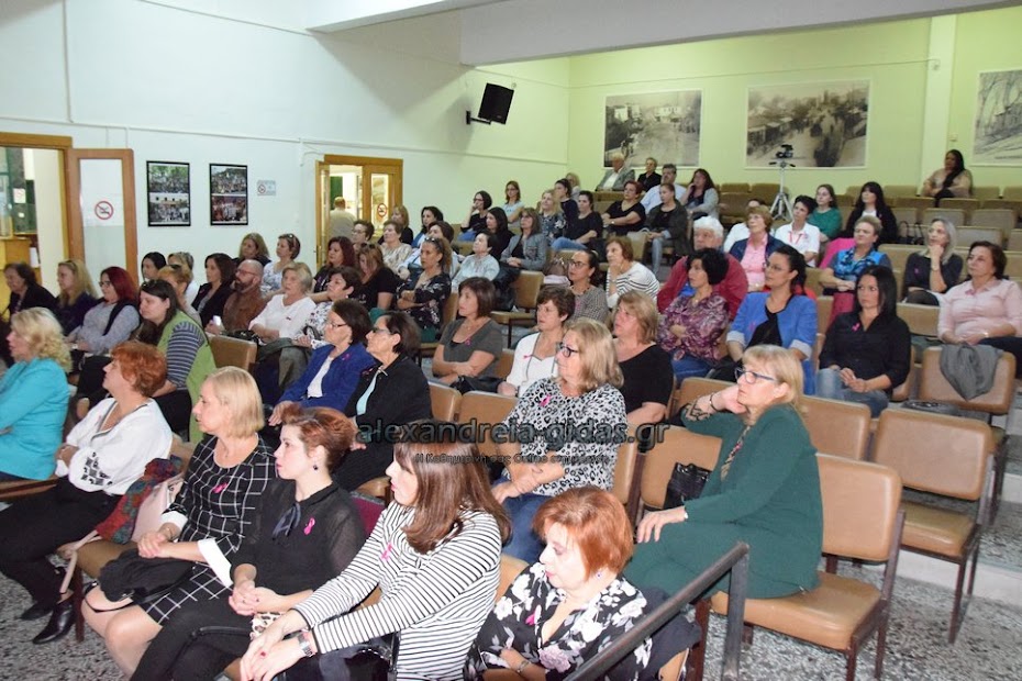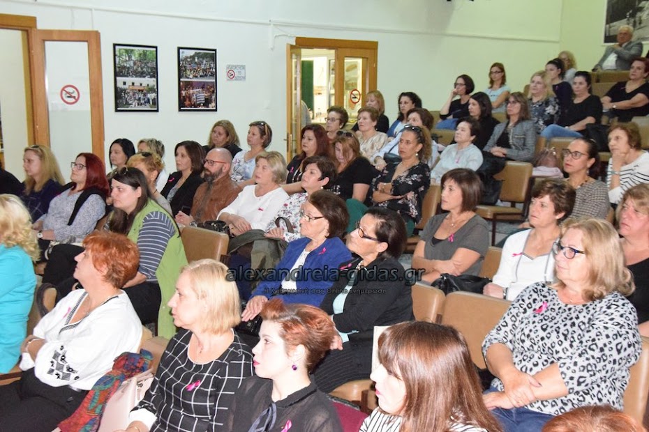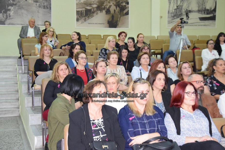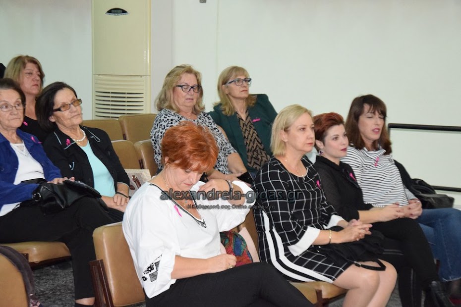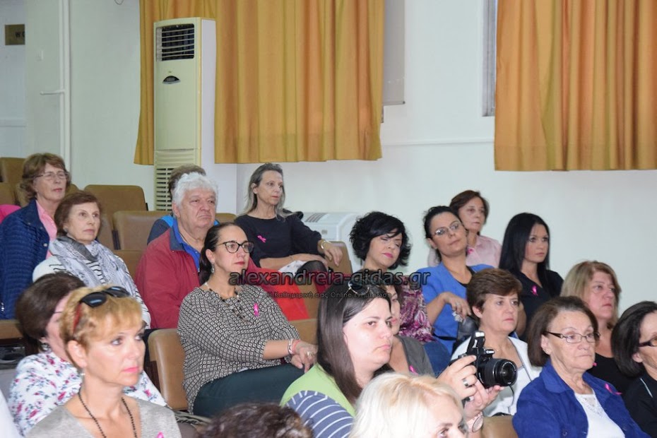 Η ομιλία πραγματοποιήθηκε σε συνεργασία με τον Σύλλογο Γυναικών με καρκίνο μαστού Θεσσαλονίκης “Άλμα Ζωής” και τον δήμο Αλεξάνδρειας.