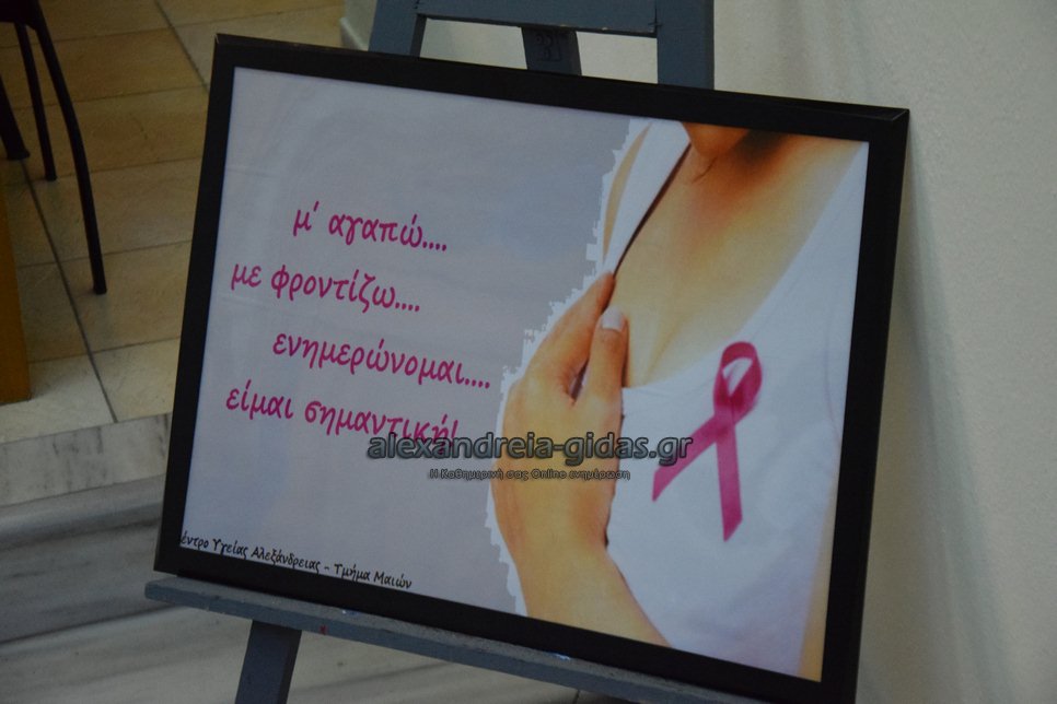 Σημαντική και πολύ ενδιαφέρουσα ενημερωτική ομιλία με θέμα «Μιλάμε για τον Καρκίνο του μαστού» διοργάνωσαν την Πέμπτη 24 Οκτωβρίου 2019 οι μαίες του Κέντρου Υγείας Αλεξάνδρειας.