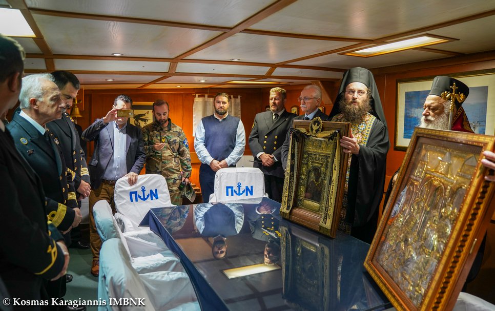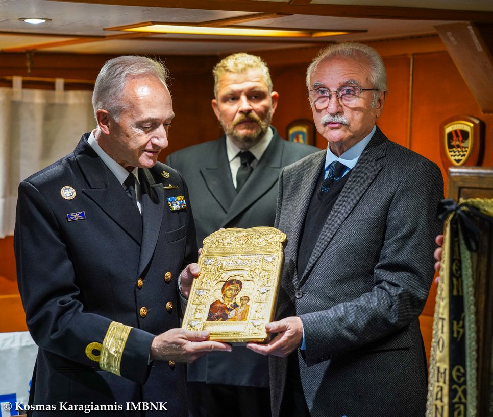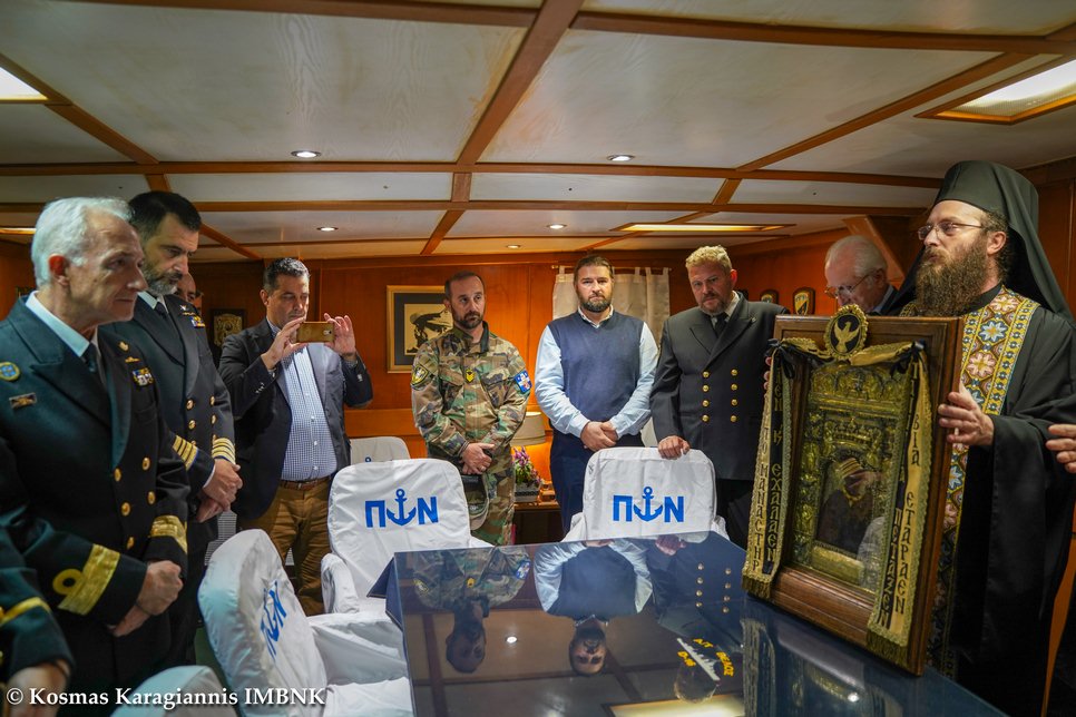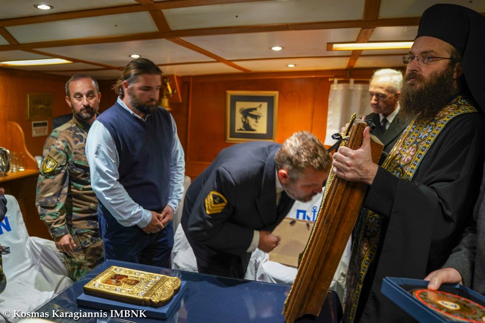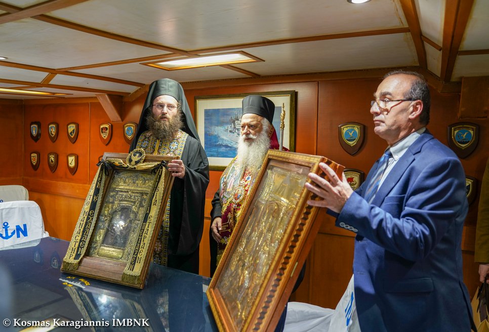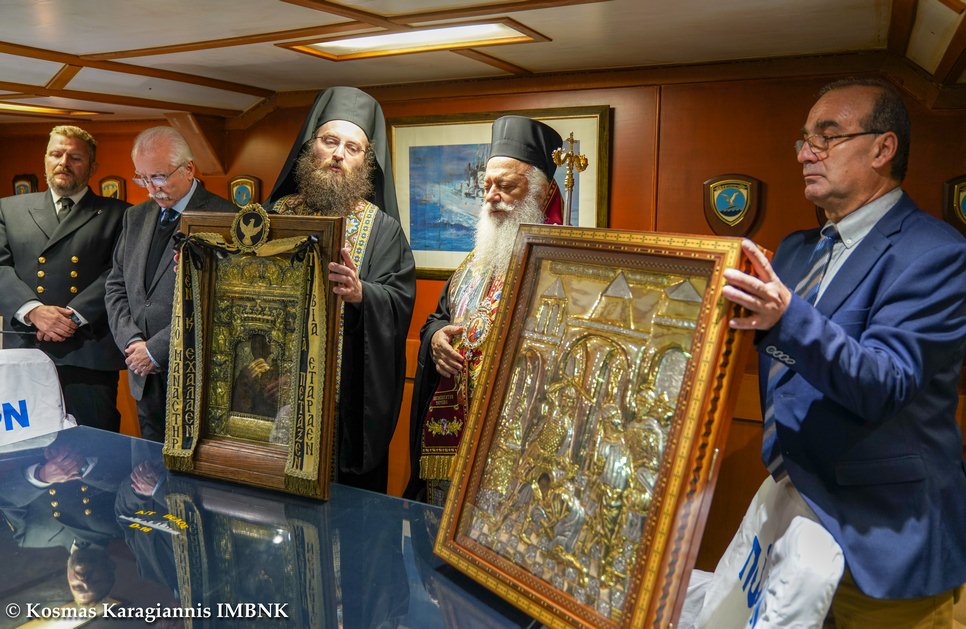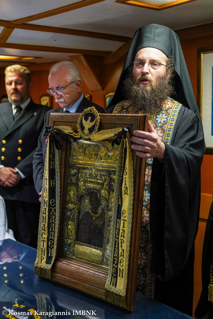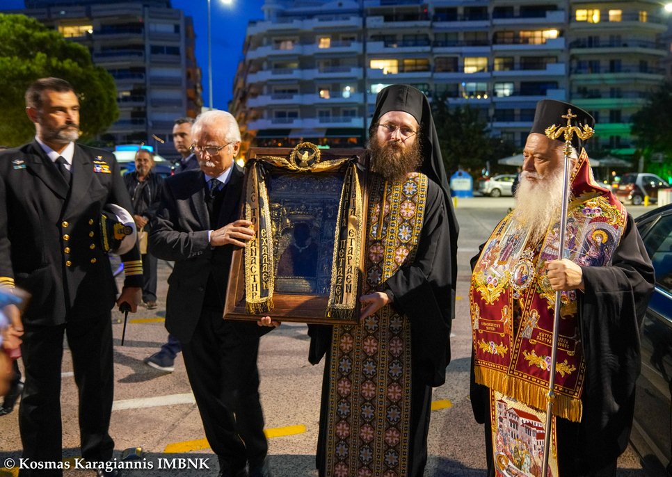 Στην συνέχεια ο Σεβασμιώτατος Μητροπολίτης Βεροίας κ. Παντελεήμων συνοδευόμενος από τον Πρόεδρο του Σωματείου «Παναγία Σουμελά» κ. Γεώργιο Τανιμανίδη και μέλη του Διοικητικού Συμβουλίου μετέφερε την Ιερά Εικόνα της Παναγίας Σουμελά στο ιστορικό αντιτορπιλικό πλοίο «Βέλος» στη Νέα Παραλία Θεσσαλονίκης, όπου την υποδέχθηκαν και την προσκύνησαν ο Αρχιπλοίαρχος και το πλήρωμα και έπειτα η Ιερά Εικόνα επέστρεψε στο θρονί της, στο όρος Βέρμιο.