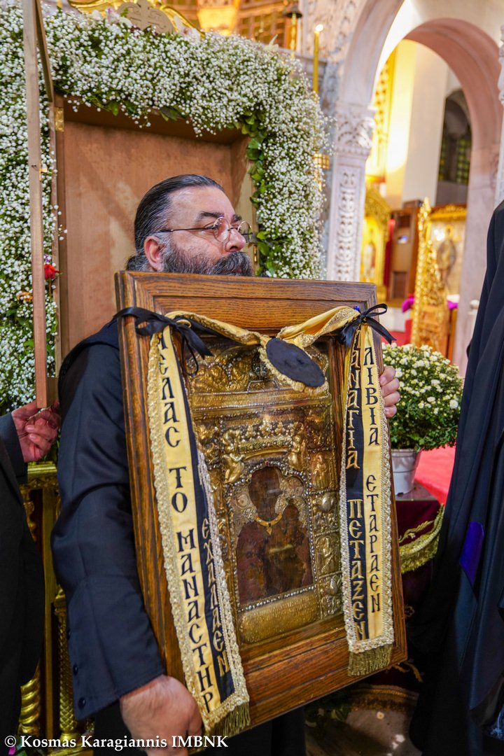 Λίγο πριν την αναχώρηση τελέστηκε δέηση από τον Σεβασμιώτατο Μητροπολίτη Βεροίας, Ναούσης και Καμπανίας κ. Παντελεήμονα, ενώ ο προϊστάμενος του Ιερού Ναού Αρχιμ. Δαμασκηνός Πέτικας ευχαρίστησε τον Σεβασμιώτατο για την μεταφορά του Ιερού Εικονίσματος. Με την σειρά του ο Σεβασμιώτατος ευχαρίστησε τον Παναγιώτατο Μητροπολίτη Θεσσαλονίκης κ. Άνθιμο αλλά και τον προϊστάμενο του Ιερού Ναού για την φιλοξενία και αναφέρθηκε στην μεταφορά του Ιερού Εικονίσματος της Παναγίας Σουμελά στην Θεσσαλονίκη προ τριαντακονταετίας, όταν ο ίδιος ήταν Προϊστάμενος του Ιερού Ναού.