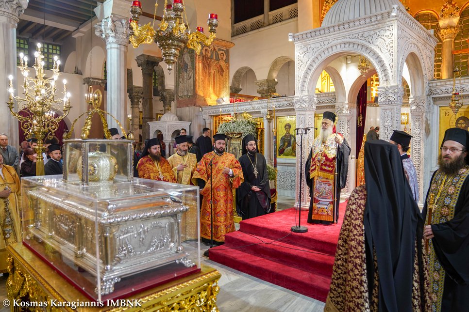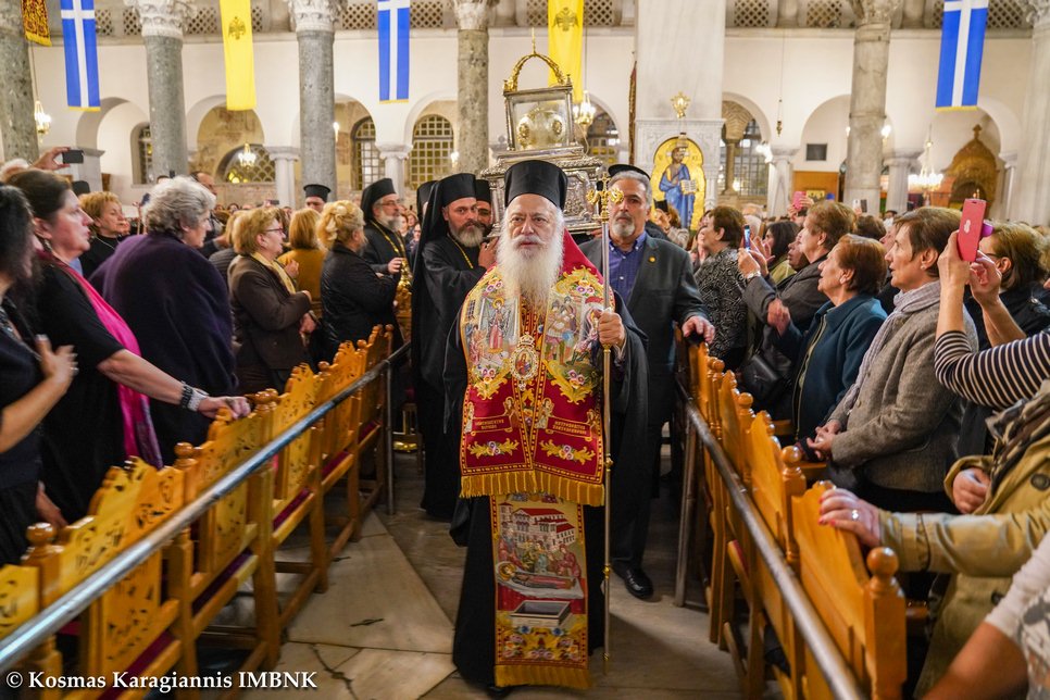 Τέλος ο Σεβασμιώτατος επέστρεψε στον Ιερό Προσκυνηματικό Ναό του Αγίου Δημητρίου Θεσσαλονίκης, όπου έλαβε μέρος στην Ακολουθία του Μύρου του Αγίου Δημητρίου, προεξάρχοντος του Παναγιωτάτου Μητροπολίτου Θεσσαλονίκης κ. Ανθίμου.