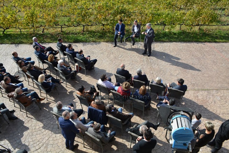Παίρνοντας τον λόγο ο πρόεδρος του Συνδέσμου Αμπελουργών – Οινοποιών Νάουσας Γιώργος Φουντούλης, ο πρόεδρος της Ένωσης Οινοπαραγωγών του Αμπελώνα της Βορείου Ελλάδος Στέλιος Μπουτάρης και άλλοι οινοποιοί, εξέφρασαν την ικανοποίηση τους για αυτή την πρωτοβουλία του Πρωθυπουργού να τους ακούσει και μεταξύ άλλων, ζήτησαν προστασία της αμπελουργικής ζώνης της Νάουσας, όπου καλλιεργείται η ποικιλία του ξινόμαυρου, είπαν ότι περνά κρίση το επάγγελμα του αμπελουργού, ότι η νομοθεσία έχει μείνει πίσω, πως υπάρχουν δομικά θέματα που πρέπει να αντιμετωπιστούν και πως είναι μεγάλη η φορολογία.