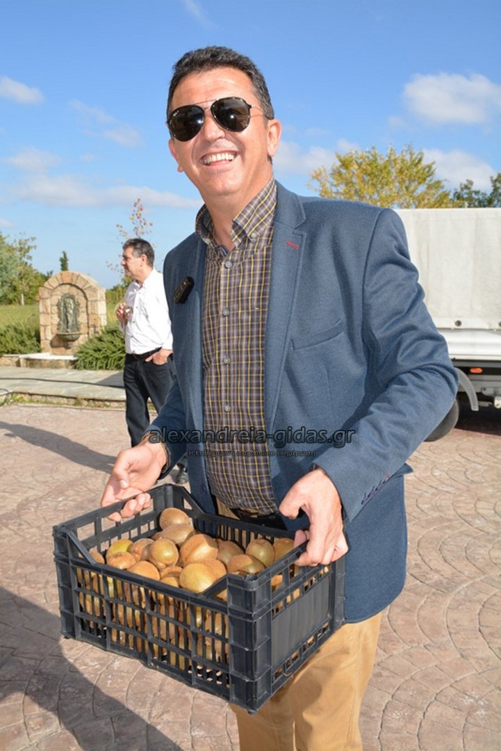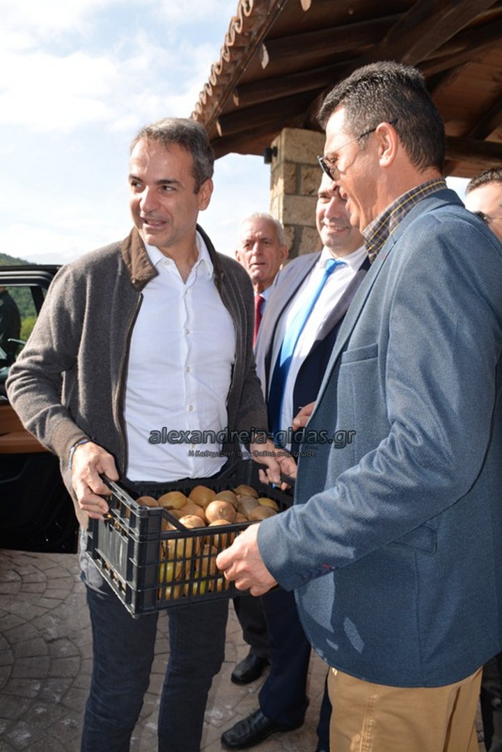 Στη συνέχεια μετέβη στο «Κτήμα Καλαϊτζή» όπου τον υποδέχθηκαν με λουλούδια, κεράσματα και κρασί παραγωγής του κτήματος, καθώς και με μια κλούβα ακτινίδια, ως ένδειξη ευγνωμοσύνης όπως είπε ο παραγωγός που του τα πρόσφερε, για την καλή δουλειά που έκανε ο Πρωθυπουργός με το ακτινίδιο. Εκεί τον περίμεναν και πολλά στελέχη της ΝΔ και οινοπαραγωγοί, καθώς και ο Υπουργός Αγροτικής Ανάπτυξης Μάκης Βορίδης μαζί με τον Γενικό Γραμματέα του Υπουργείου Κώστα Μπαγινέτα, που είχαν φτάσει λίγη ώρα νωρίτερα ειδικά για την συνάντηση με τους οινοπαραγωγούς.
