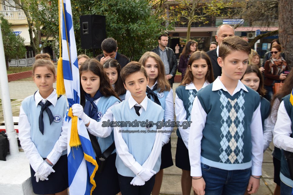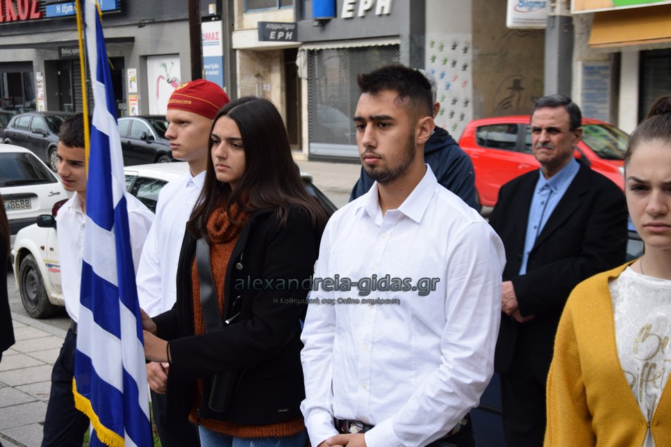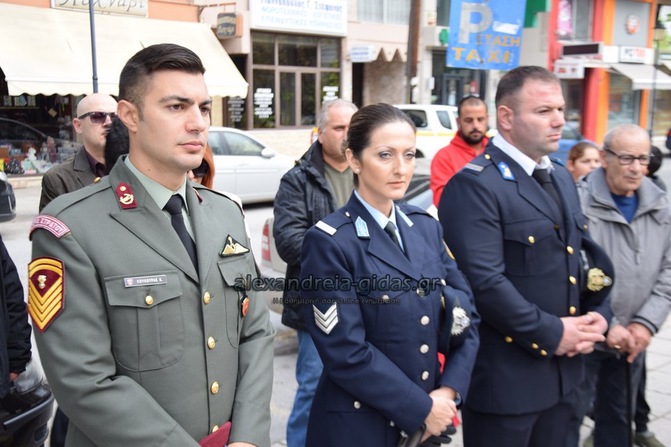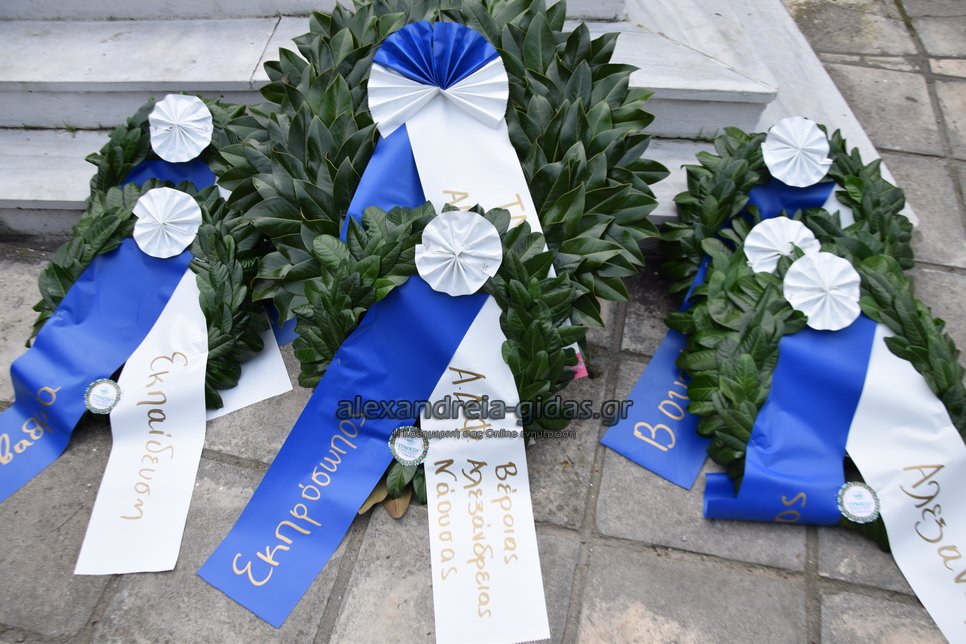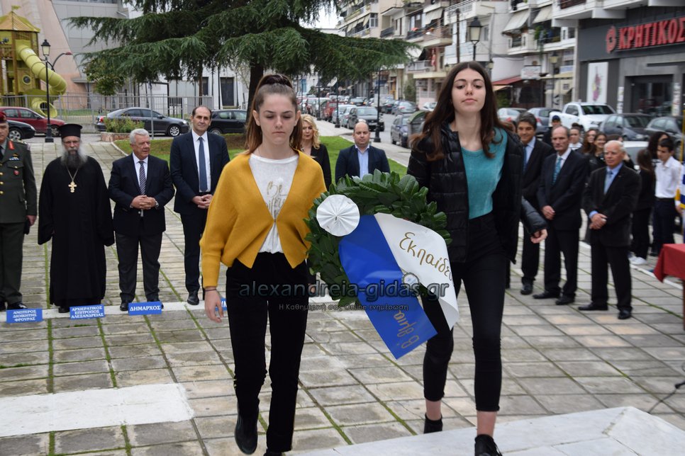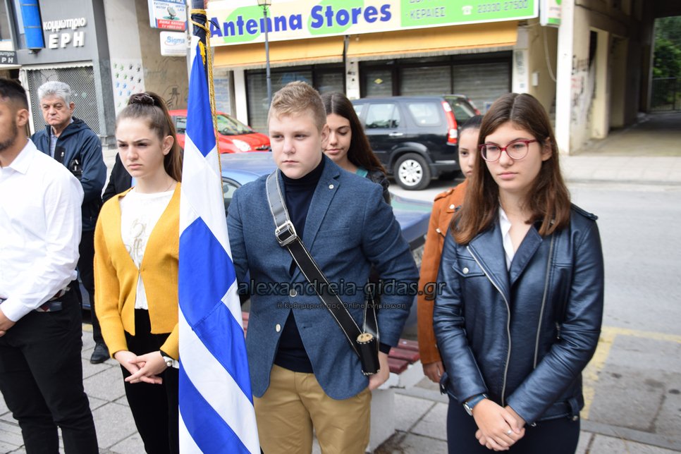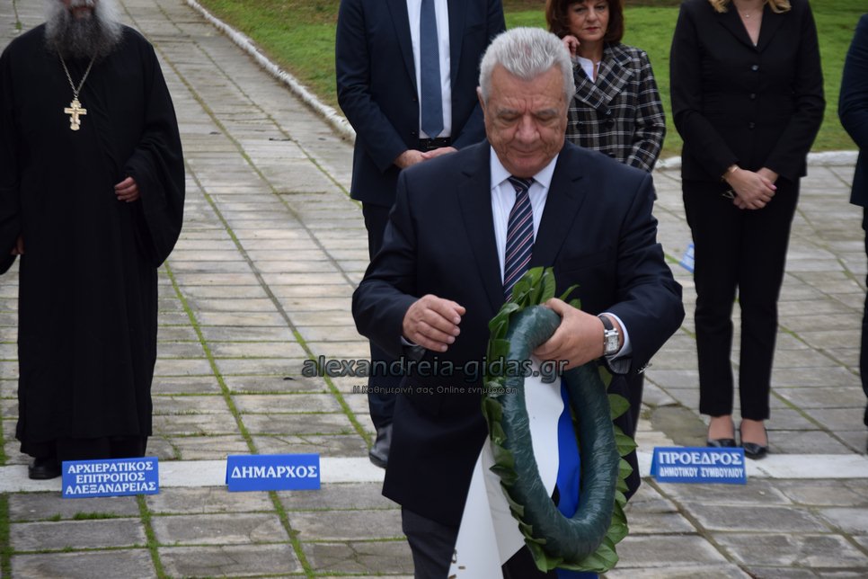 Κατάθεση στεφάνων στο Ηρώο στην Αλεξάνδρεια πραγματοποιήθηκε το πρωί της Κυριακής 17 Νοεμβρίου 2019 στα πλαίσια των εκδηλώσεων στην πόλη μας για την 46η επέτειο του Πολυτεχνείου.