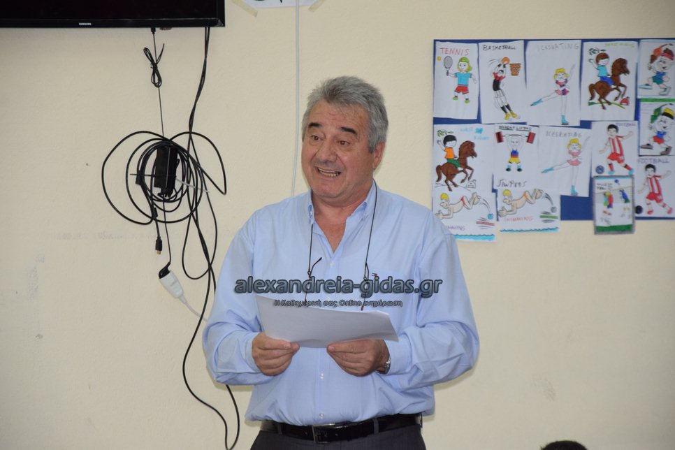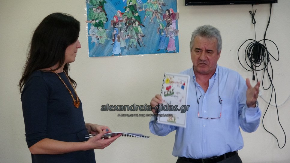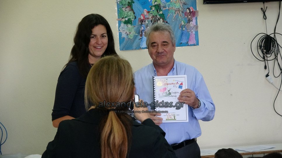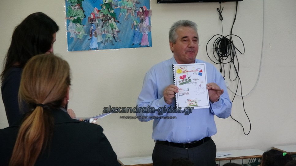 Χαιρετισμό απηύθυναν ο Διευθυντής της Πρωτοβάθμιας Εκπαίδευσης Ημαθίας Διονύσης Διαμαντόπουλος και ο αντιδήμαρχος Στέφανος Δριστάς.