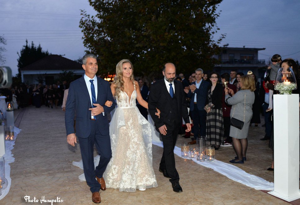 Η γαμήλια τελετή έγινε στον Ιερό Ναό Αγίου Δημητρίου στα Τρίκαλα του δήμου Αλεξάνδρειας.