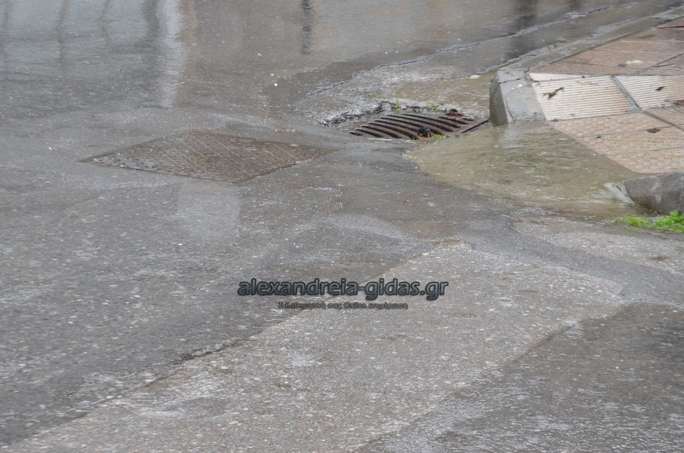 Μετά τις 12:30 ξεκίνησε η έντονη βροχόπτωση και στην πόλη της Αλεξάνδρειας.
