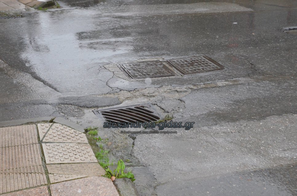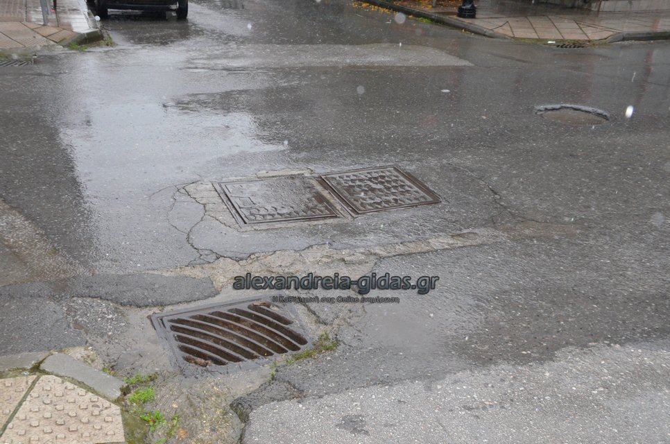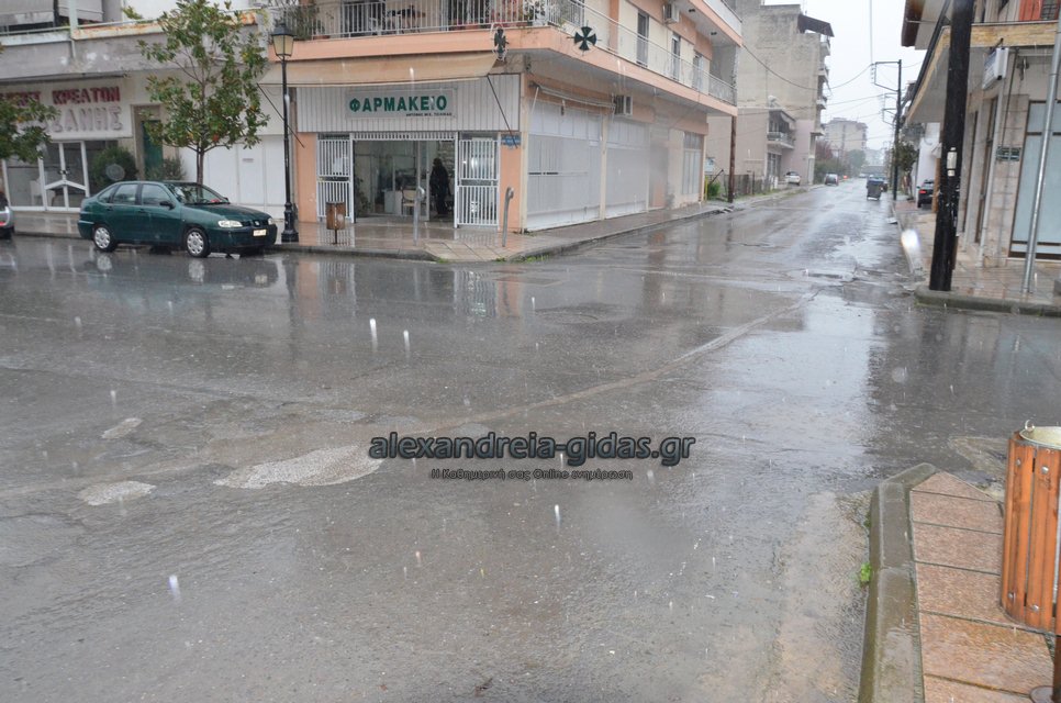 Μετά τις 12:30 ξεκίνησε η έντονη βροχόπτωση και στην πόλη της Αλεξάνδρειας.