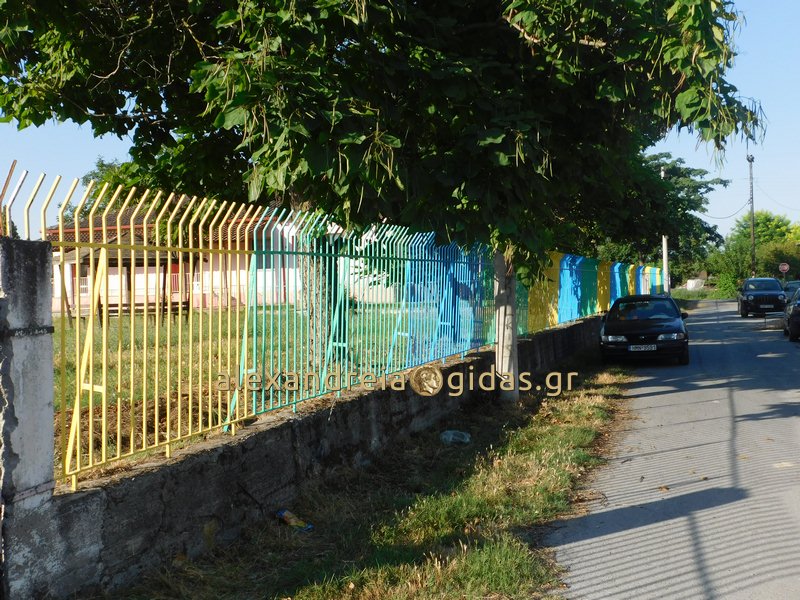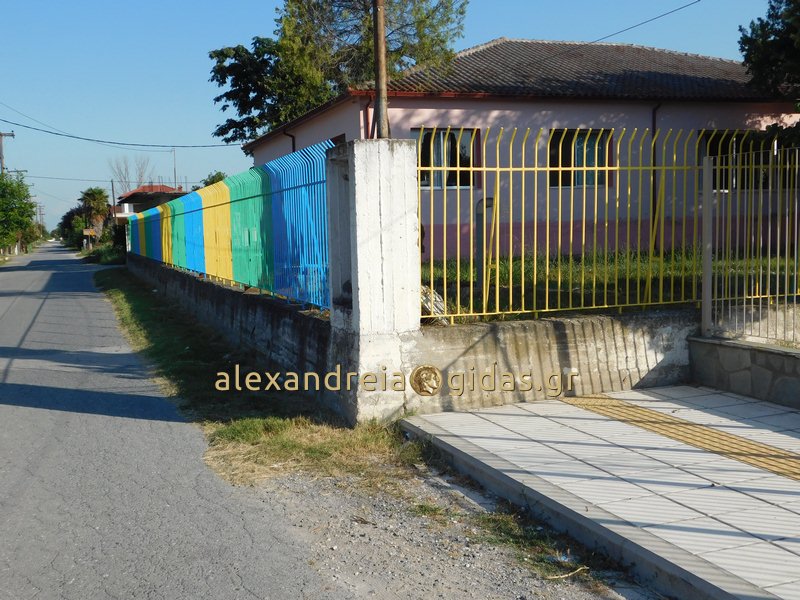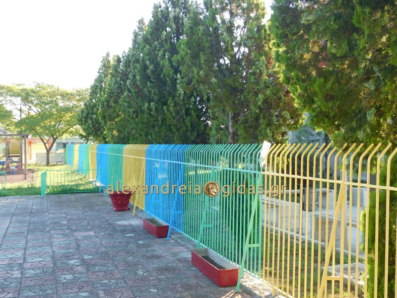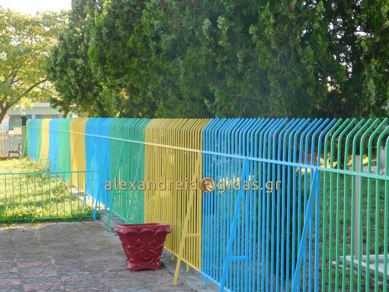 Σοβαρά, μονόχρωμα όμως. Ένα υπόλευκο, ζαχαρί χρώμα (λευκό ανακατεμένο με λίγη, ελάχιστη ώχρα) για τους τοίχους και μονόχρωμα τα κιγκλιδώματα. Αυτό το πολύχρωμο καραγκιόζ μπερντέ που συνηθίζεται σε δημοτικά / νηπιαγωγεία είναι μια άθλια μόδα που πρέπει να σταματήσει.