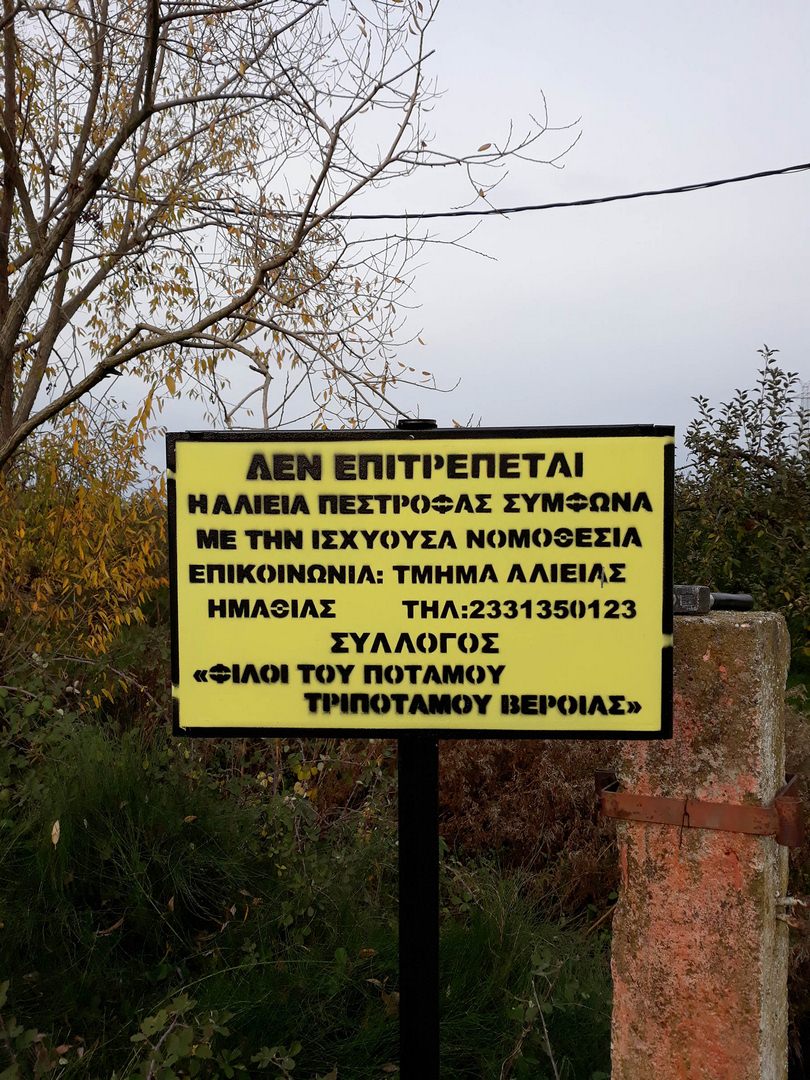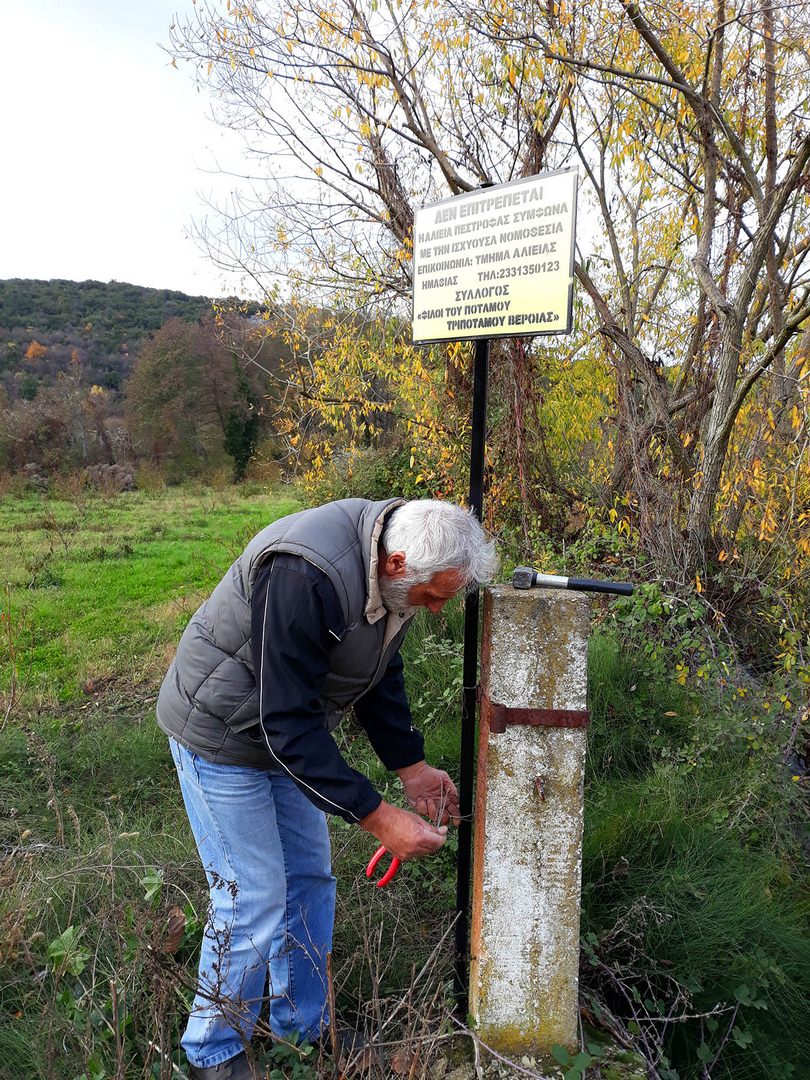 O σύλλογος «Φίλοι του ποταμού Τριπόταμου Βέροιας» σε συνεργασία με το Τμήμα Αλιείας Ημαθίας Π.Ε. Ημαθίας και τον Υδροβιολογικό Σταθμό Πέλλας του ΥΠΑΑΤ, προχώρησε στην τοποθέτηση απαγορευτικών πινακίδων αλιείας κατά μήκος του ρου του ποταμού Τριπόταμου.