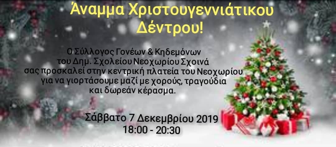 Ο Σύλλογος Γονέων και Κηδεμόνων του Δημοτικού Σχολείου Νεοχωρίου – Σχοινά σας προσκαλεί στην κεντρική πλατεία του Νεοχωρίου για να γιορτάσετε μαζί με χορούς, τραγούδια και δωρεάν κέρασμα.