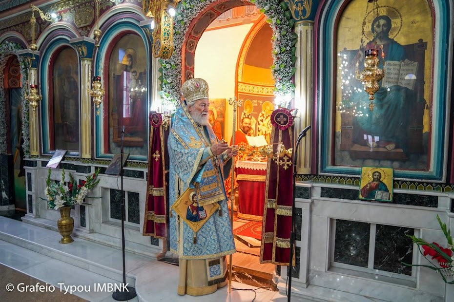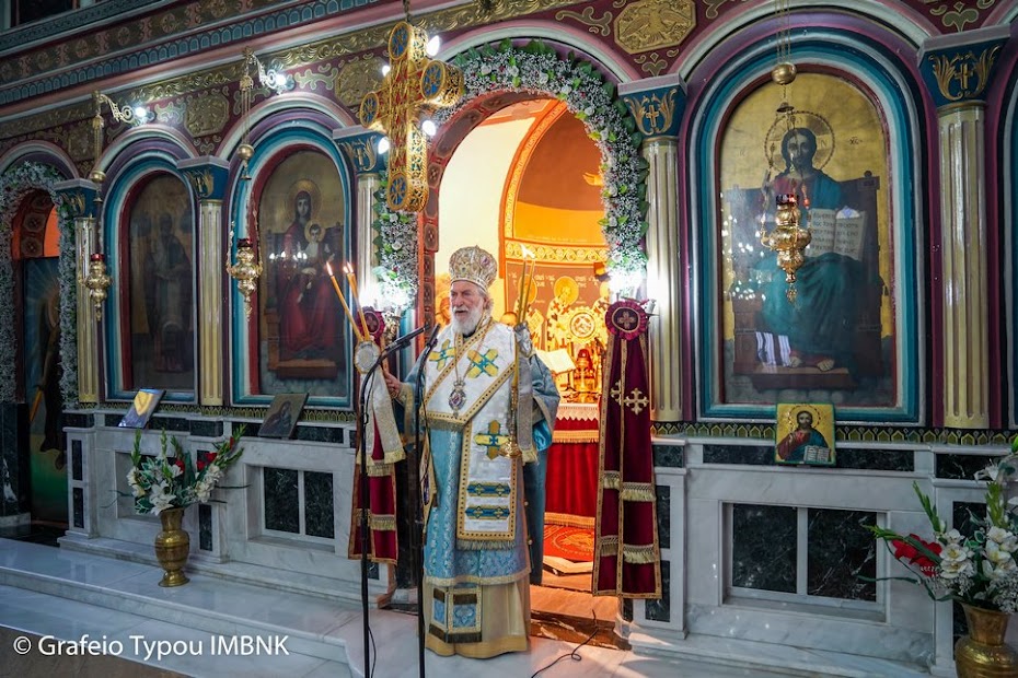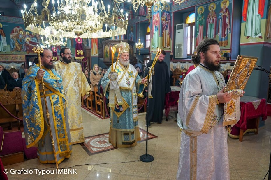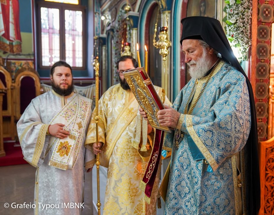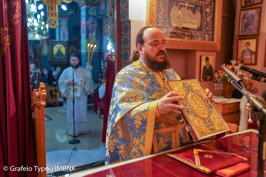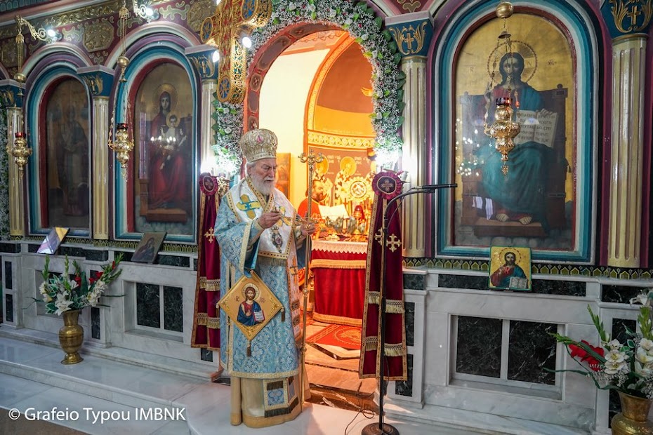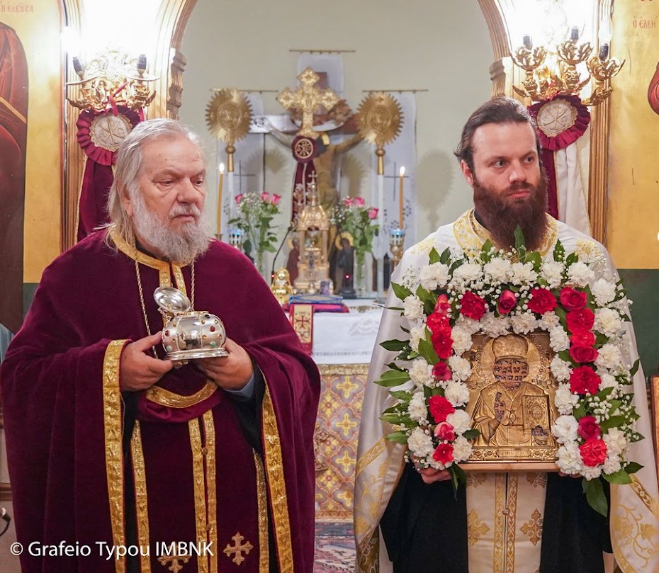 Την παραμονή της εορτής το εσπέρας στον πανηγυρίζοντα Ιερό Ναό του Αγίου Νικολάου Πατρίδας, ο Θεοφιλέστατος υποδέχθηκε την Ιερά Εικόνα της Παναγίας της Οδηγήτριας, η οποία μυροβλίζει συνεχώς, και στη συνέχεια χοροστάτησε στον Πανηγυρικό Εσπερινό και κήρυξε το θείο λόγο.