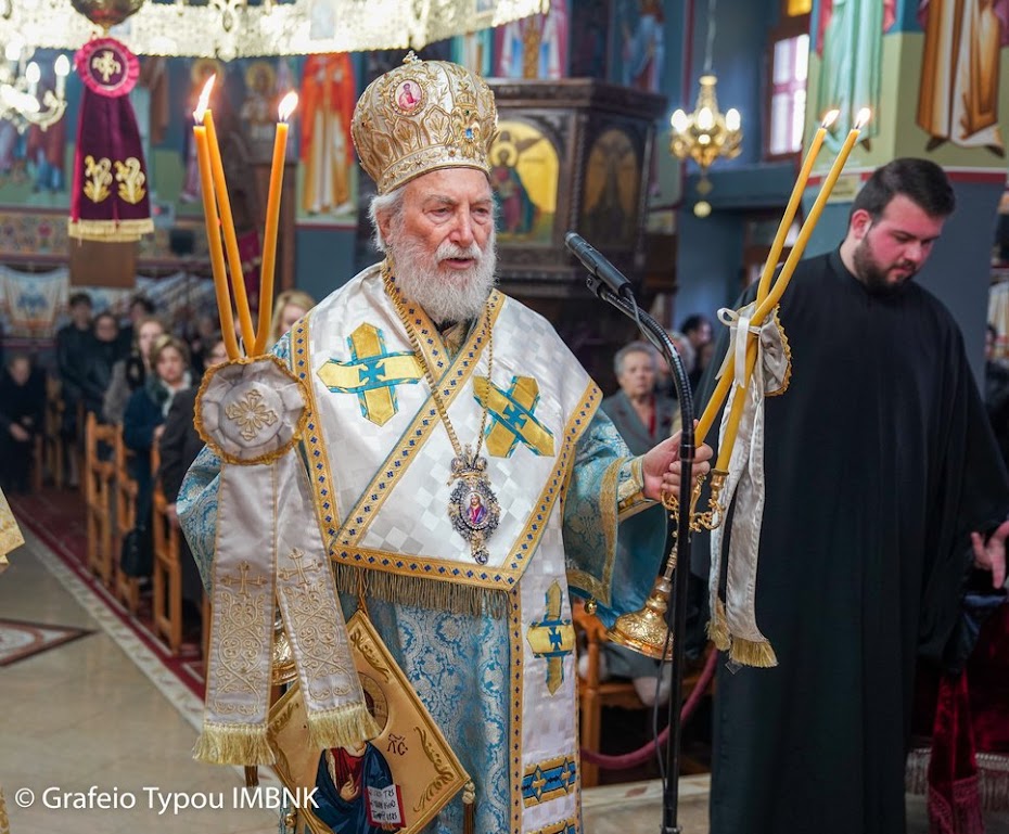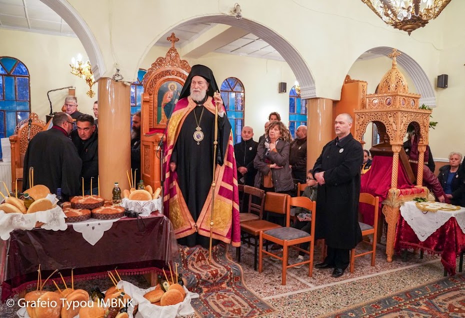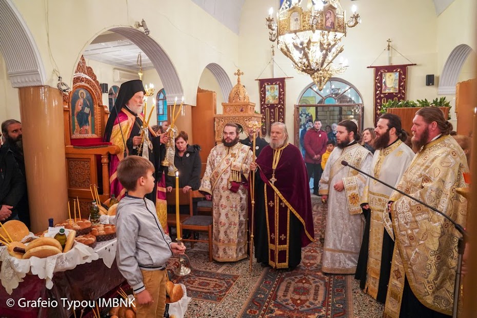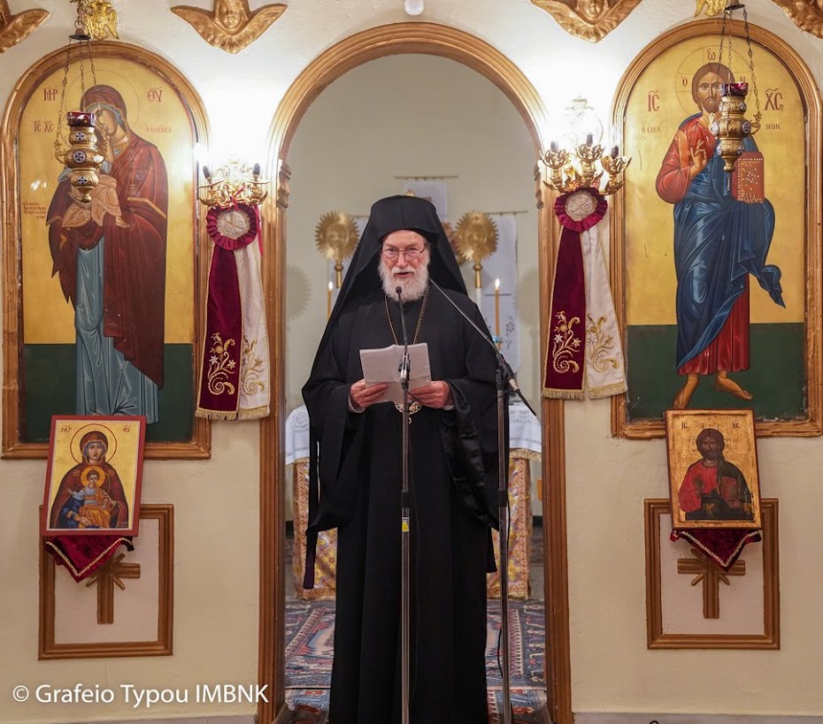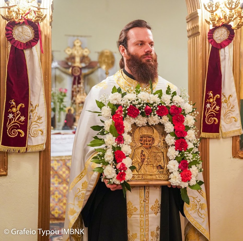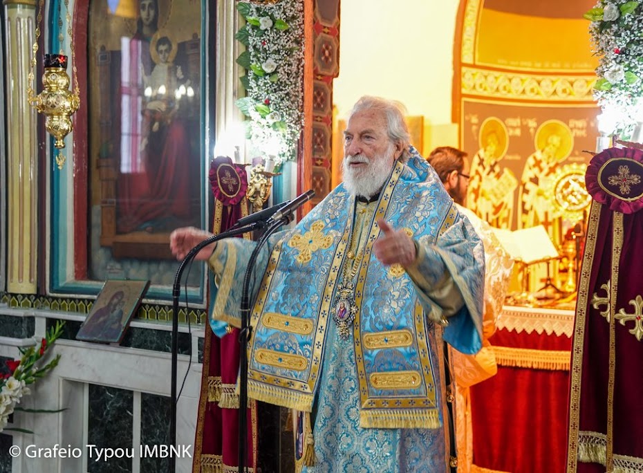 Την παραμονή της εορτής το εσπέρας στον πανηγυρίζοντα Ιερό Ναό του Αγίου Νικολάου Πατρίδας, ο Θεοφιλέστατος υποδέχθηκε την Ιερά Εικόνα της Παναγίας της Οδηγήτριας, η οποία μυροβλίζει συνεχώς, και στη συνέχεια χοροστάτησε στον Πανηγυρικό Εσπερινό και κήρυξε το θείο λόγο.