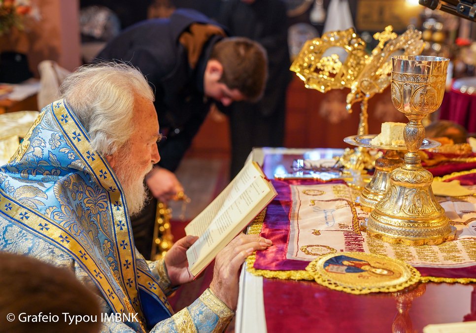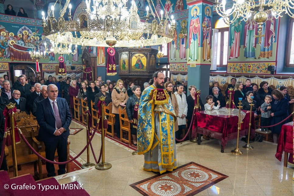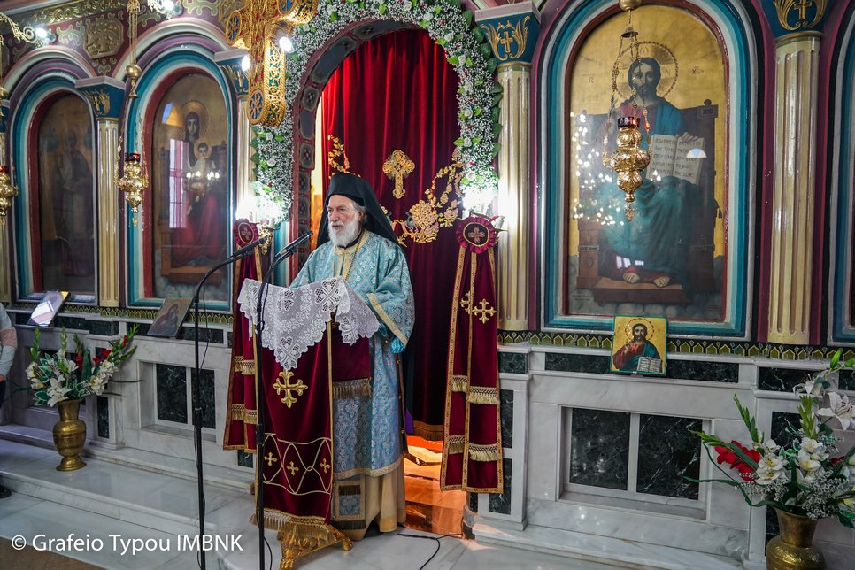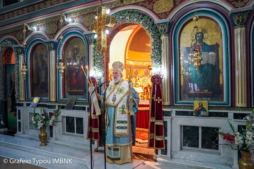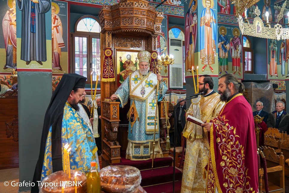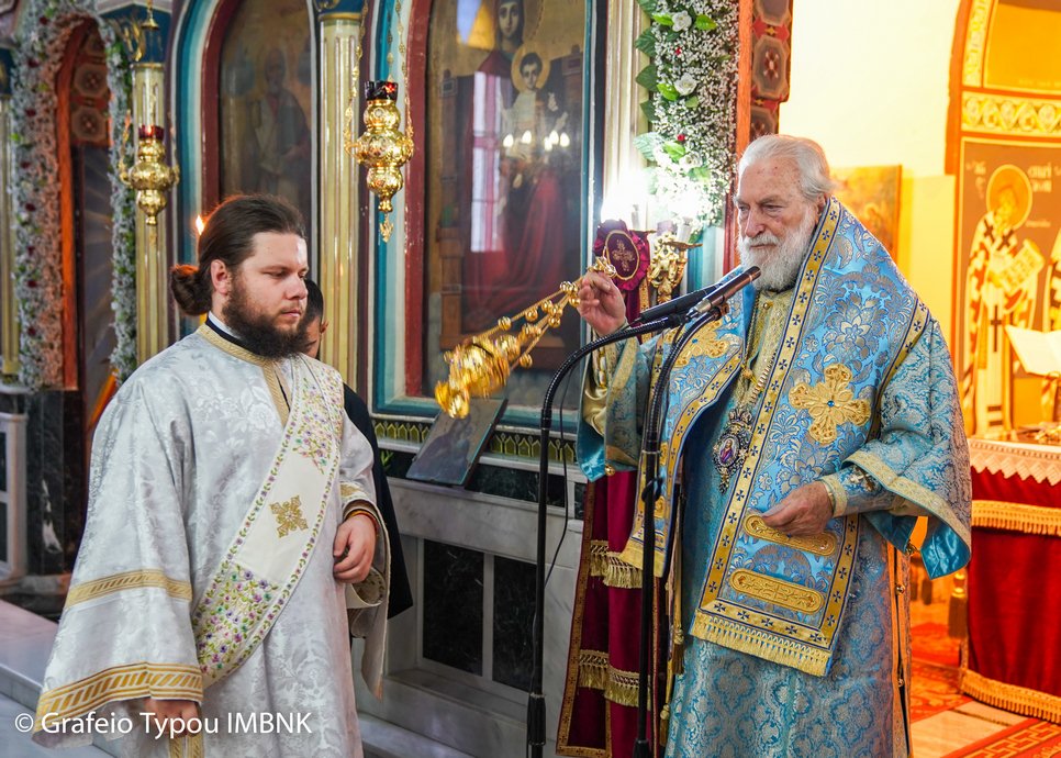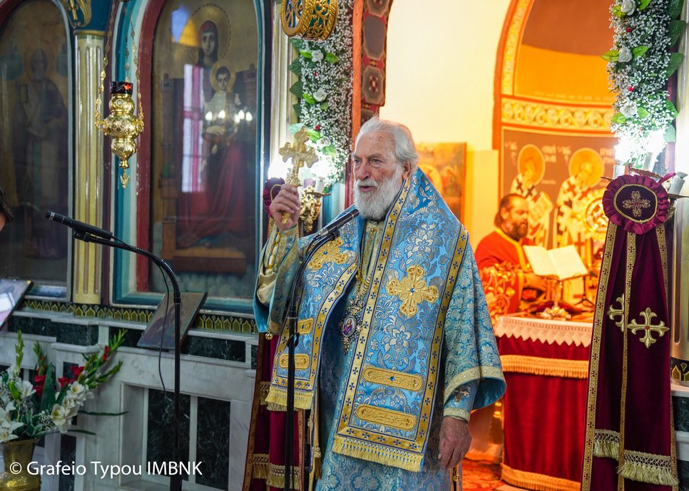 Την παραμονή της εορτής το εσπέρας στον πανηγυρίζοντα Ιερό Ναό του Αγίου Νικολάου Πατρίδας, ο Θεοφιλέστατος υποδέχθηκε την Ιερά Εικόνα της Παναγίας της Οδηγήτριας, η οποία μυροβλίζει συνεχώς, και στη συνέχεια χοροστάτησε στον Πανηγυρικό Εσπερινό και κήρυξε το θείο λόγο.