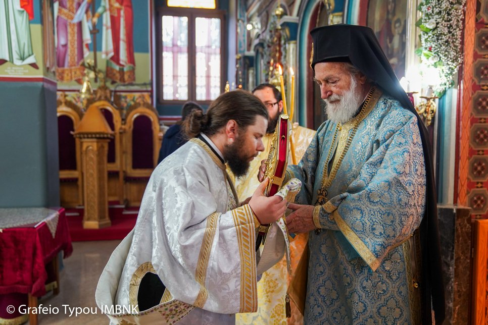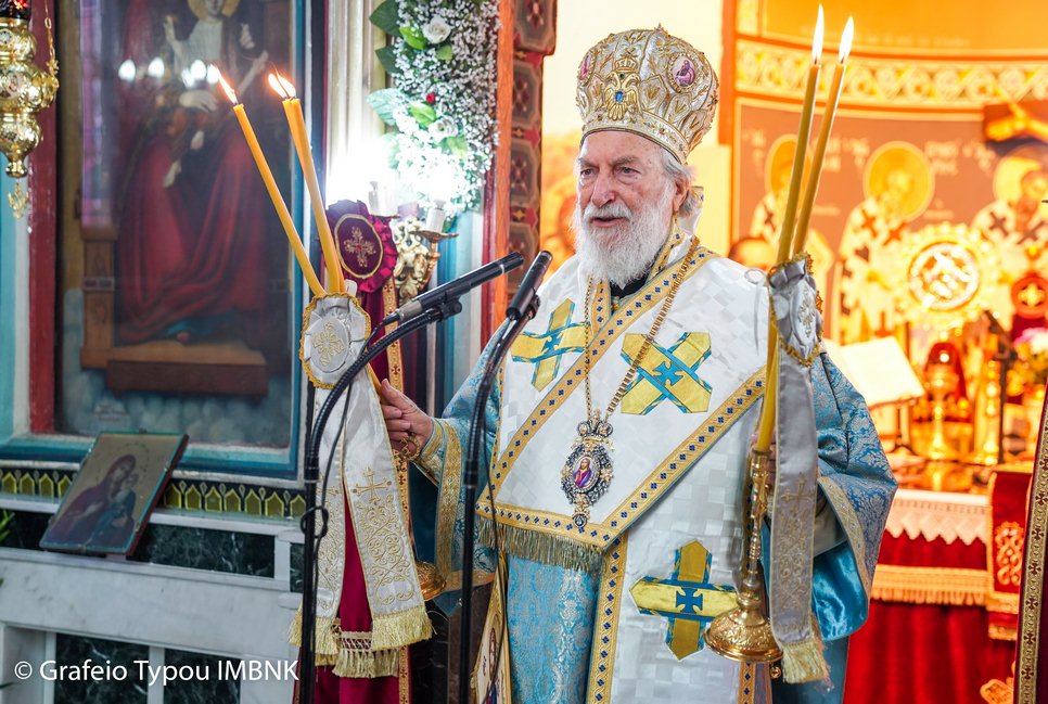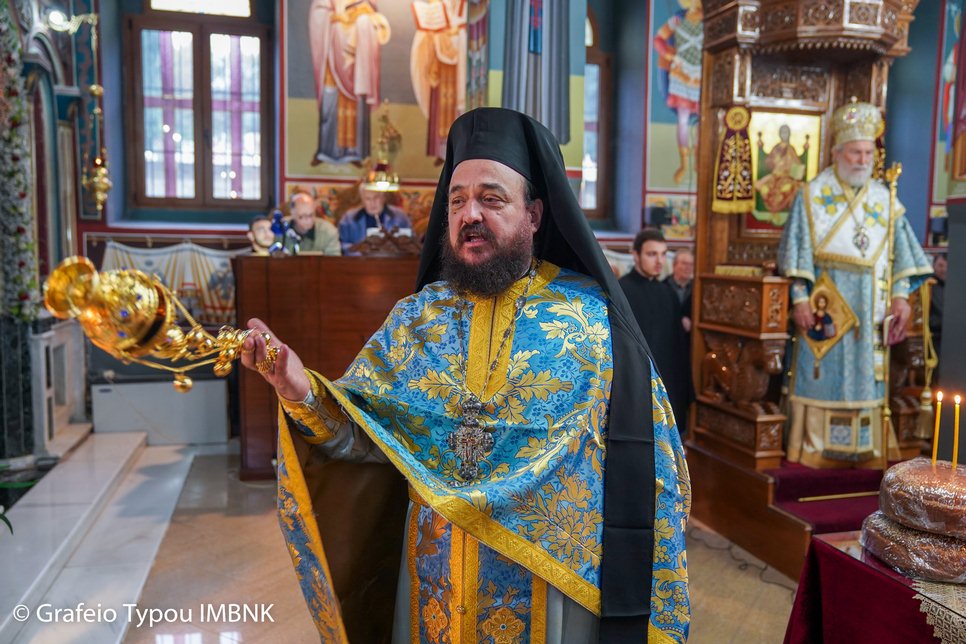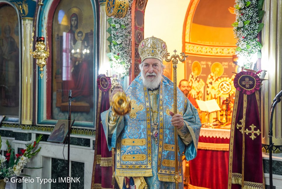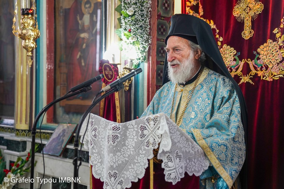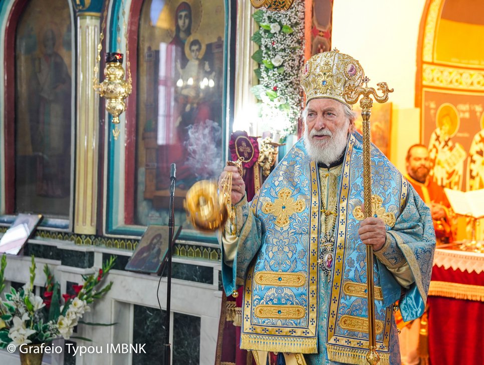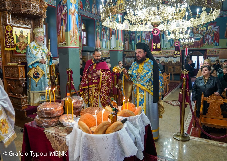Την παραμονή της εορτής το εσπέρας στον πανηγυρίζοντα Ιερό Ναό του Αγίου Νικολάου Πατρίδας, ο Θεοφιλέστατος υποδέχθηκε την Ιερά Εικόνα της Παναγίας της Οδηγήτριας, η οποία μυροβλίζει συνεχώς, και στη συνέχεια χοροστάτησε στον Πανηγυρικό Εσπερινό και κήρυξε το θείο λόγο.