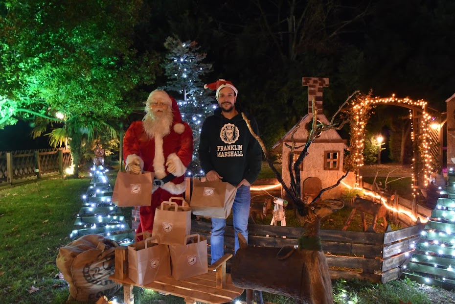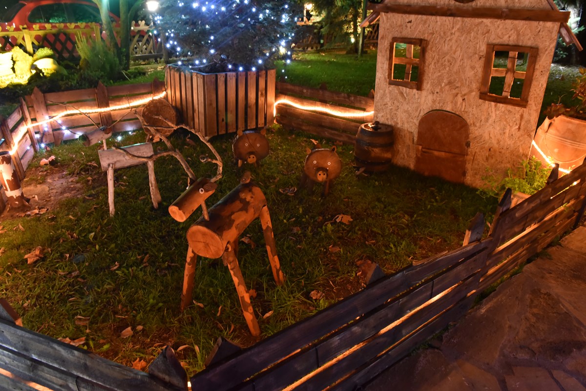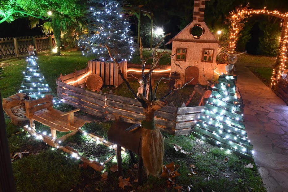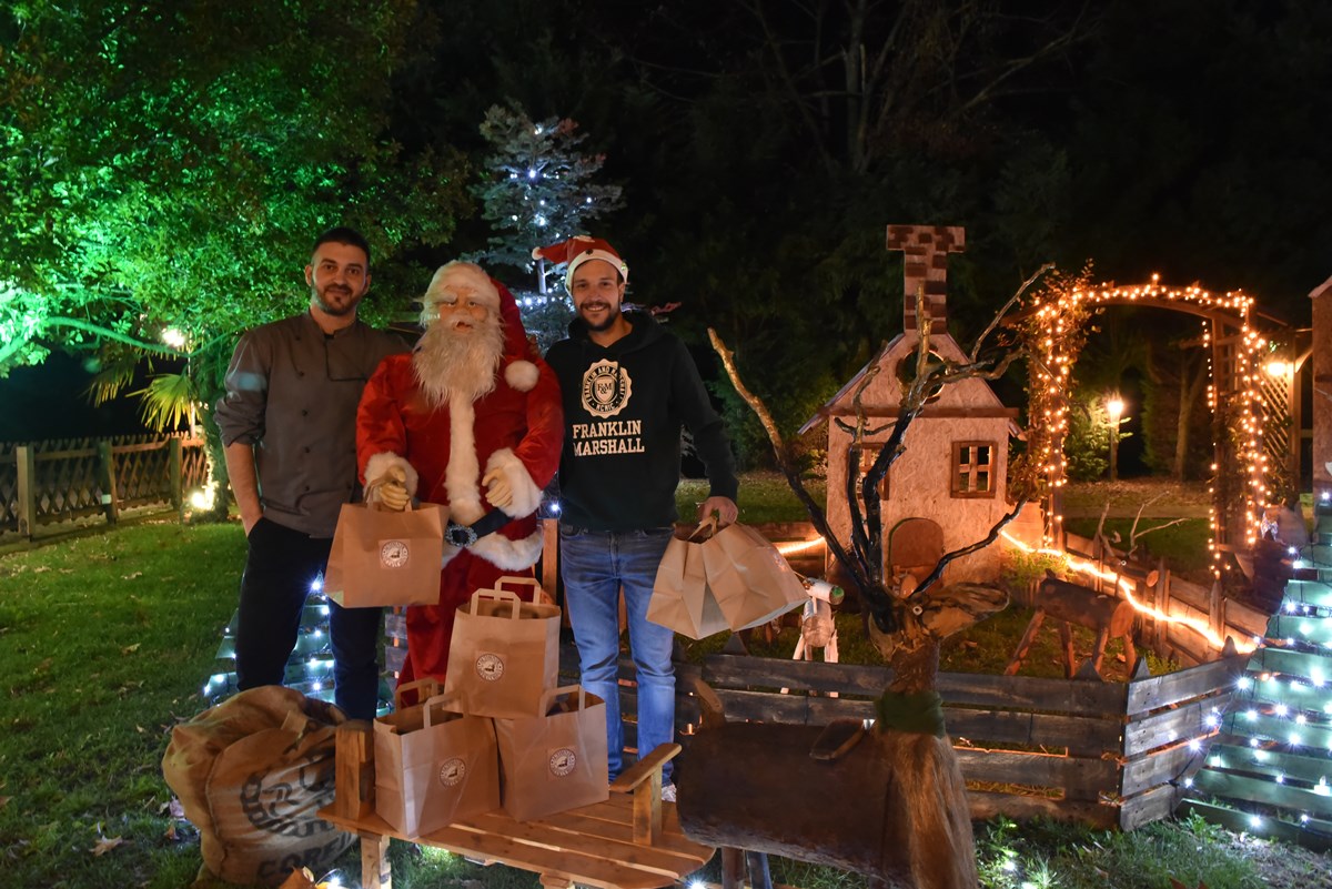 Για μια ακόμη χρονιά οι υπεύθυνοι της επιχείρησης έχουν ετοιμάσει ένα πανέμορφο Χριστουγεννιάτικο σκηνικό στον εξωτερικό χώρο του καταστήματος. Βασικό χαρακτηριστικό της πανέμορφης αυτής ατμόσφαιρας που έχουν ετοιμάσει, το μεράκι και η αγάπη γι αυτό που κάνουν. Όλα το σκηνικό το οποίο θα δείτε παρακάτω έχει δημιουργηθεί από υλικά όπως φελλοί από μπουκάλια, παλέτες, κορμοί δέντρων κλπ, τα οποία αν αξιοποιηθούν και χρησιμοποιηθούν σωστά φέρνουν το παρακάτω αποτέλεσμα.