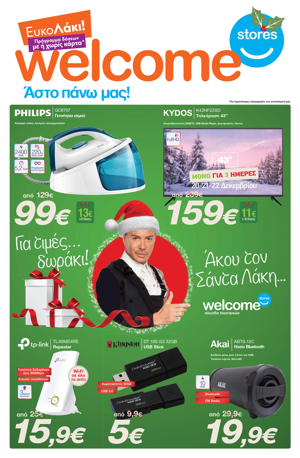 Το νέο εκπτωτικό φυλλάδιο Δεκεμβρίου κυκλοφόρησε ήδη και περιλαμβάνει προσφορές και νέα προϊόντα σε ασυναγώνιστες τιμές, χαρακτηριστικά που πλέον είναι δεδομένα στα φυλλάδια των καταστημάτων Welcome Stores.