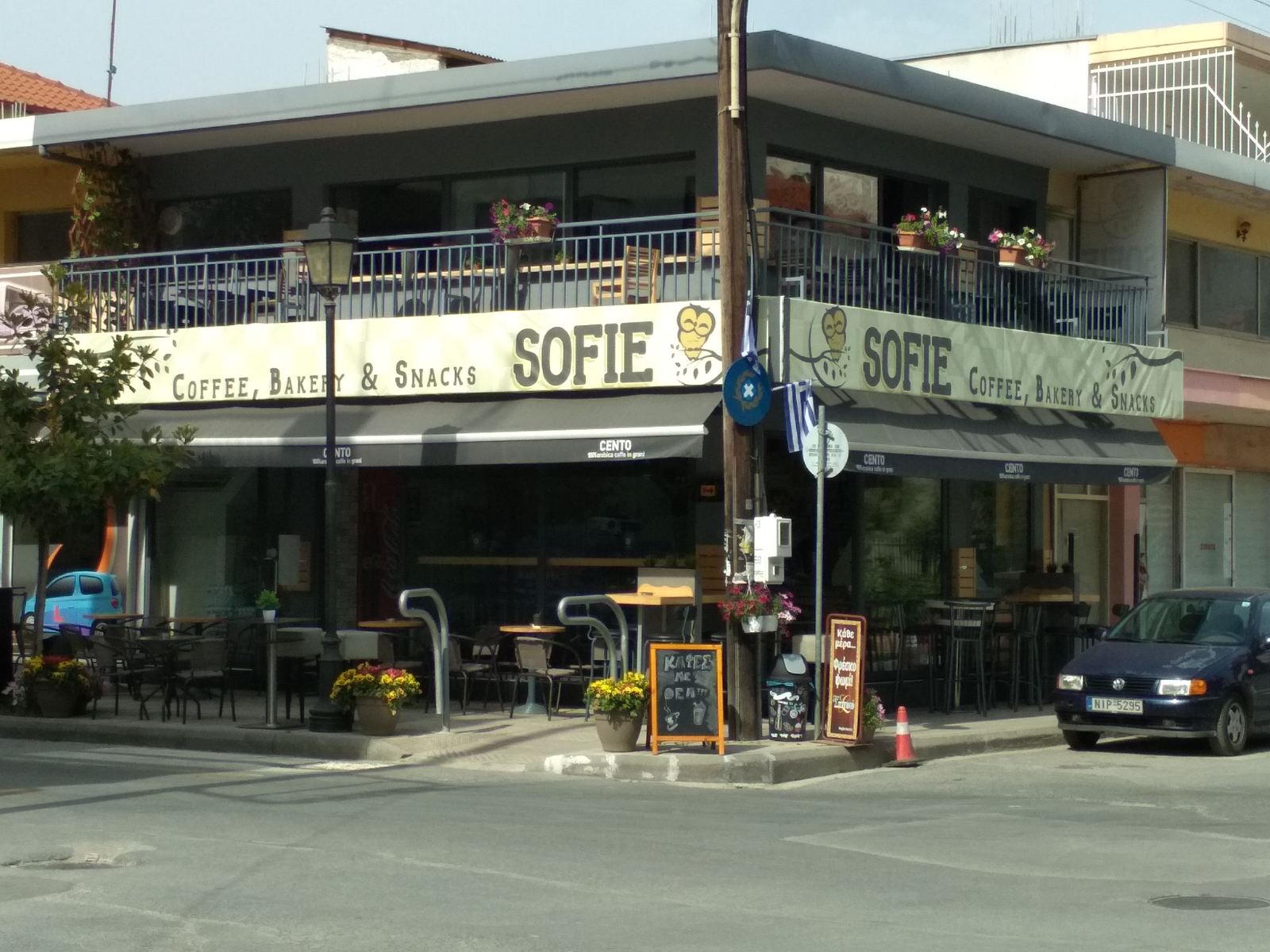 Το καφέ – μπουγάτσα «SOFIE Coffee, Bakery & Snacks» λειτουργεί απέναντι από το ΚΤΕΛ Αλεξάνδρειας στη γωνία της Ν. Πλαστήρα 19.
