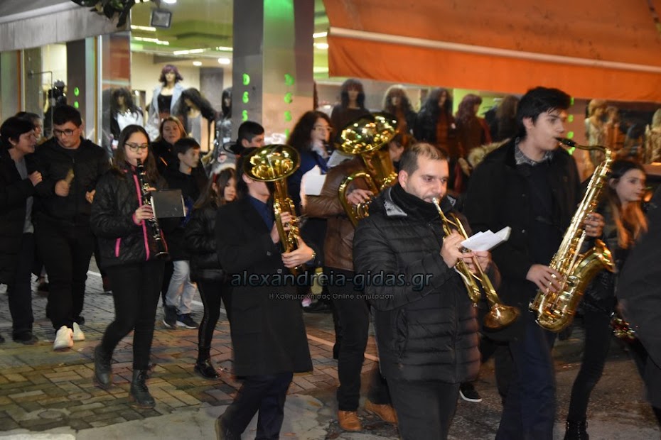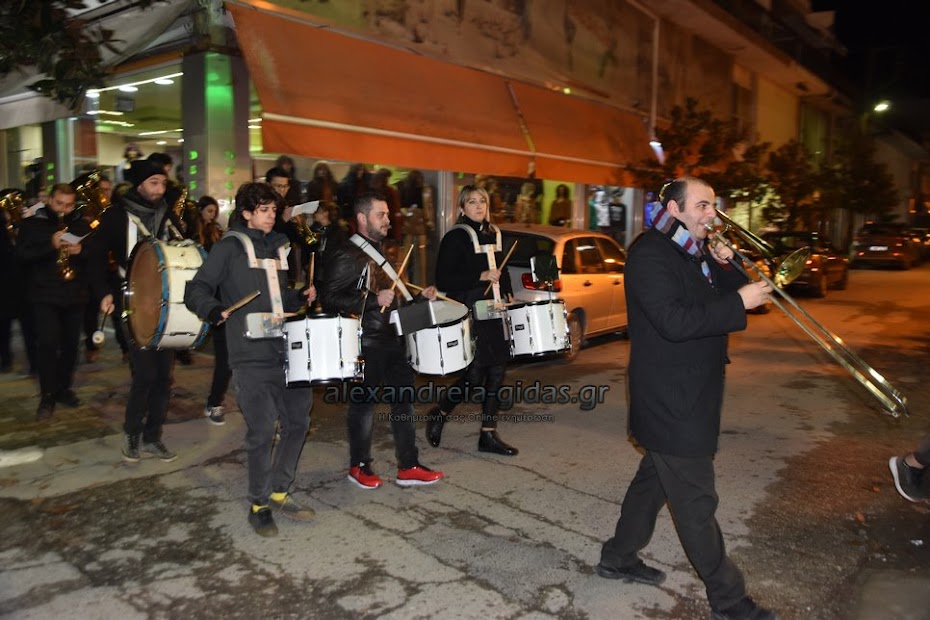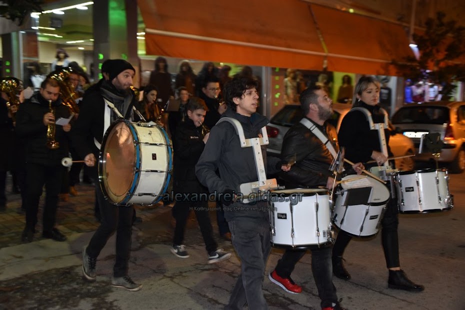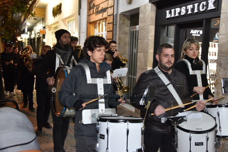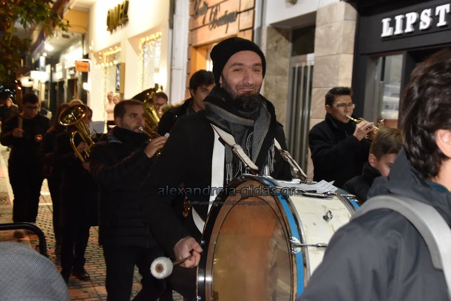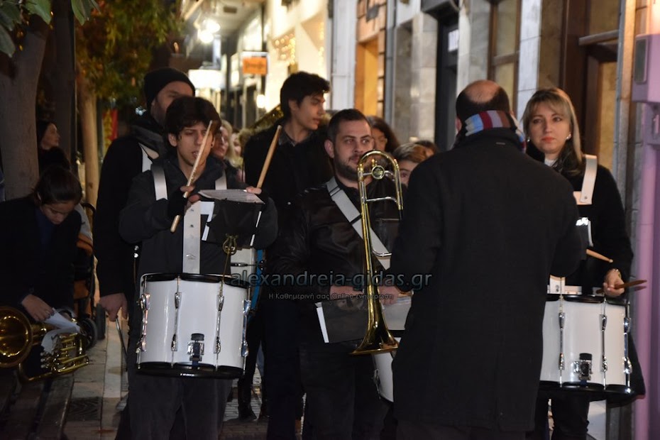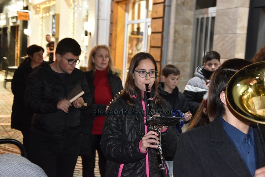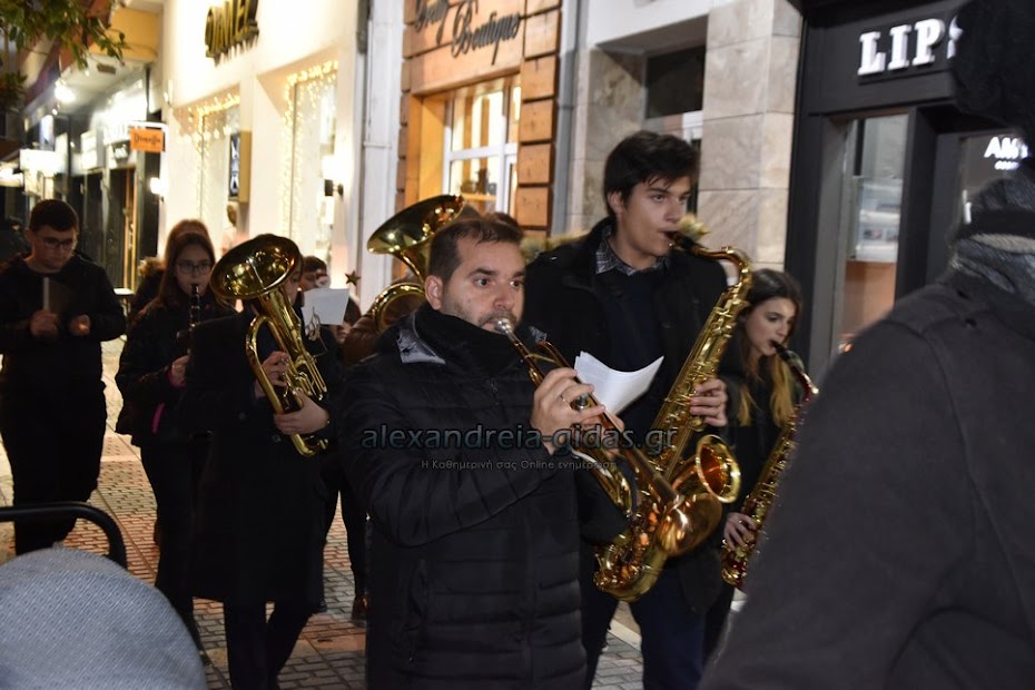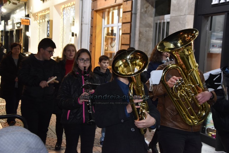 Τη μουσική τους Χριστουγεννιάτικη νότα πρόσθεσαν στους δρόμους της πόλης μας τα μέλη της Φιλαρμονικής του δήμου Αλεξάνδρειας.