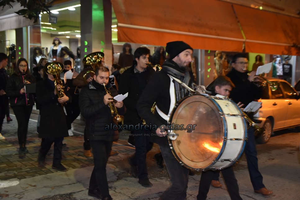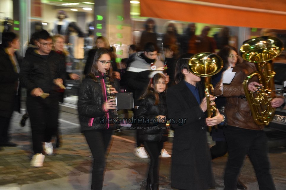 Τη μουσική τους Χριστουγεννιάτικη νότα πρόσθεσαν στους δρόμους της πόλης μας τα μέλη της Φιλαρμονικής του δήμου Αλεξάνδρειας.