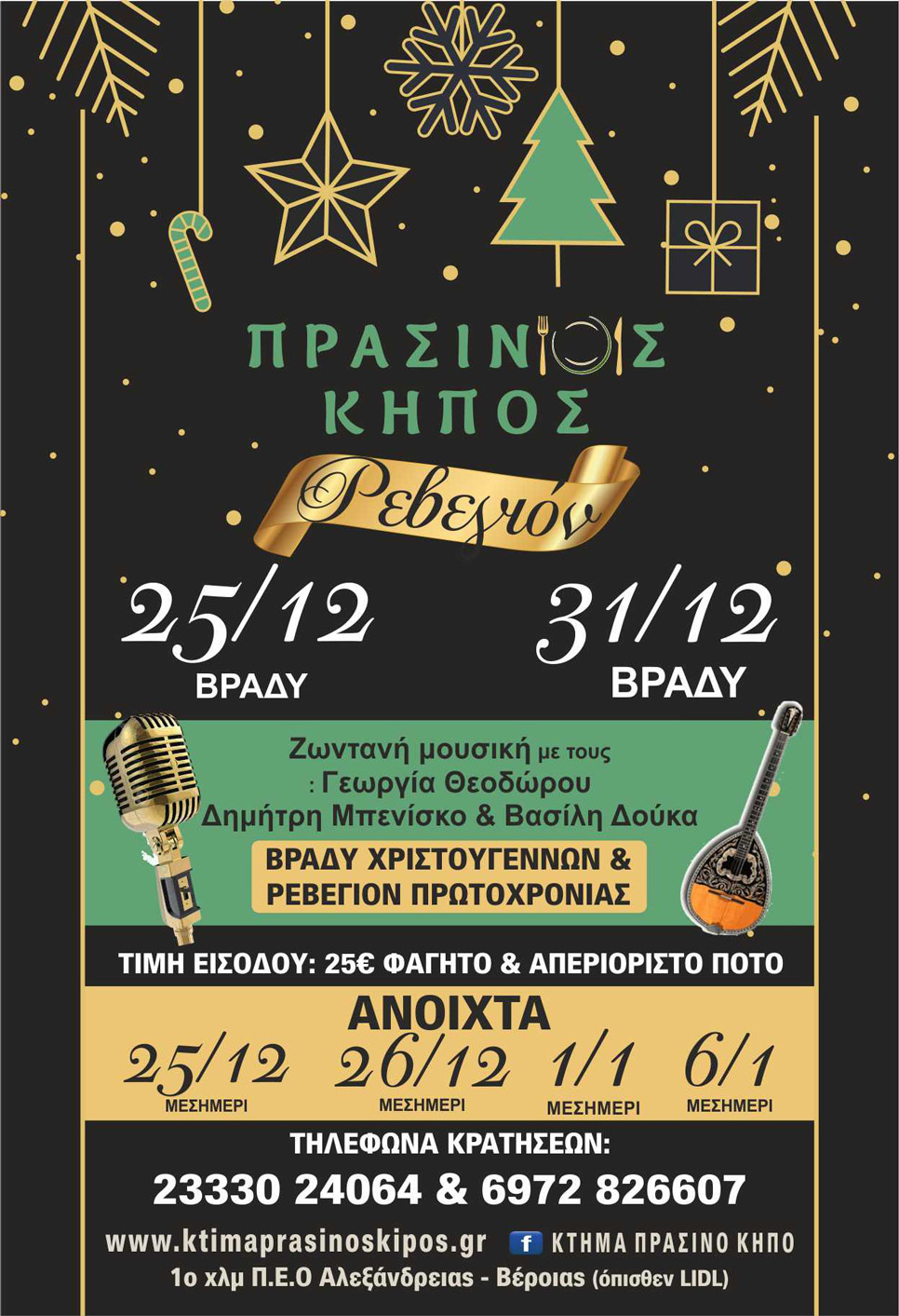 Χριστούγεννα και Πρωτοχρονιά με ζωντανή μουσική στον ΠΡΑΣΙΝΟ ΚΗΠΟ στην Αλεξάνδρεια!