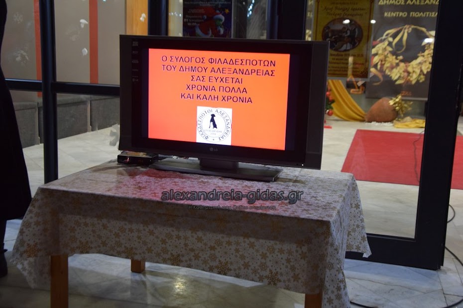 Το Φιλοζωικό σωματείο, Φιλαδέσποτοι, του δήμου Αλεξάνδρειας, οργάνωσε την Πέμπτη 26 Δεκεμβρίου 2019 το απόγευμα εκδήλωση ευρείας πολιτιστικής, κοινωνικής και φιλοζωικής διάστασης στην είσοδο του Πολιτιστικού Κέντρου Αλεξάνδρειας.