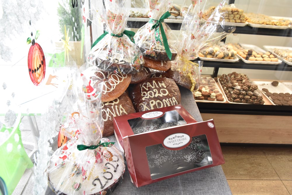 Στις γιορτές παράγονται μελομακάρονα και κουραμπιέδες καθώς και ταψάκια με μπακλαβά, κανταΐφι και ρεβανί αλλά και παραδοσιακά τσουρέκια, βασιλόπιτες και πασχαλιές.