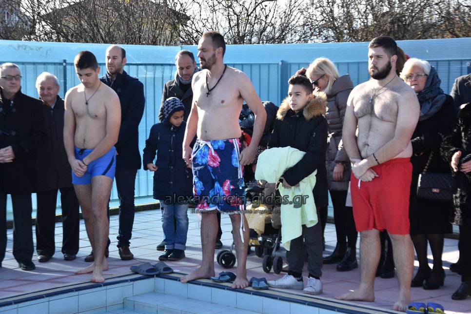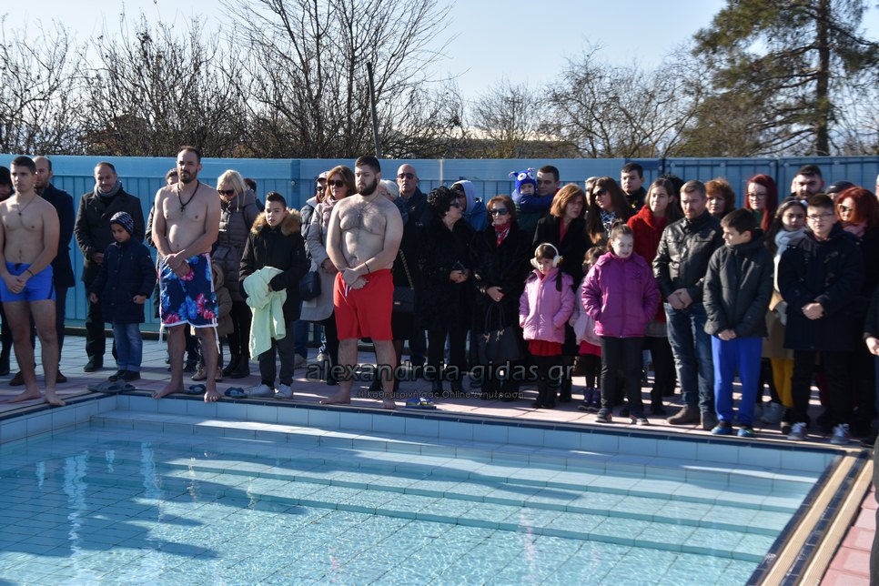 Μετά την περσινή αναβολή λόγω χιονιού, φέτος η ρίψη του Τίμιου Σταυρού έγινε κανονικά στο δημοτικό κολυμβητήριο της Αλεξάνδρειας.