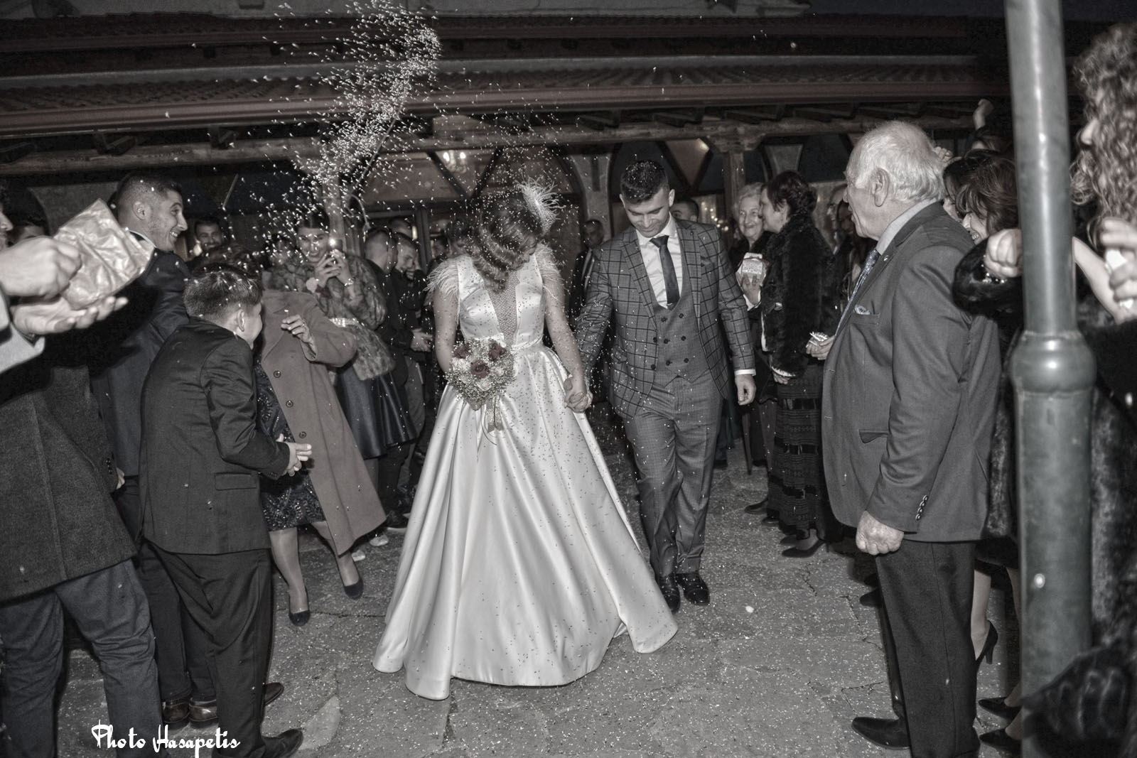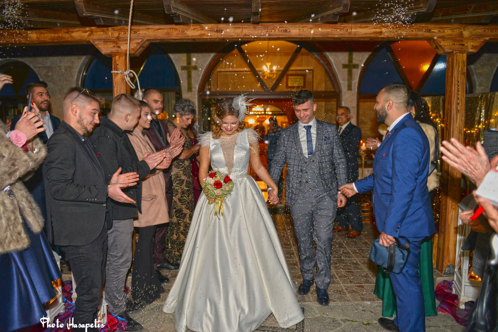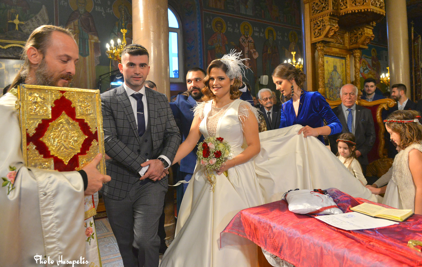 Η γαμήλια τελετή πραγματοποιήθηκε στον Ιερό Ναό Αγίας Παρασκευής στον Πλάτανο του δήμου Αλεξάνδρειας και το γλέντι στο ΑΛΕΞΑΝΔΡΕΙΟ ΜΕΛΑΘΡΟΝ.
