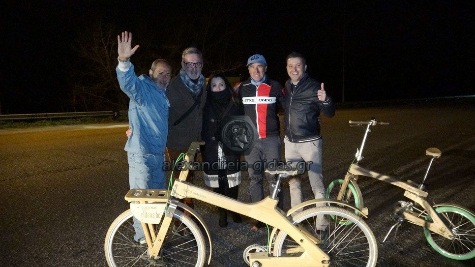 Τον είχαμε συναντήσει τον Ιούνιο του 2016 με το ξύλινο ποδήλατό του στην Αλεξάνδρεια (κλικ ΕΔΩ).