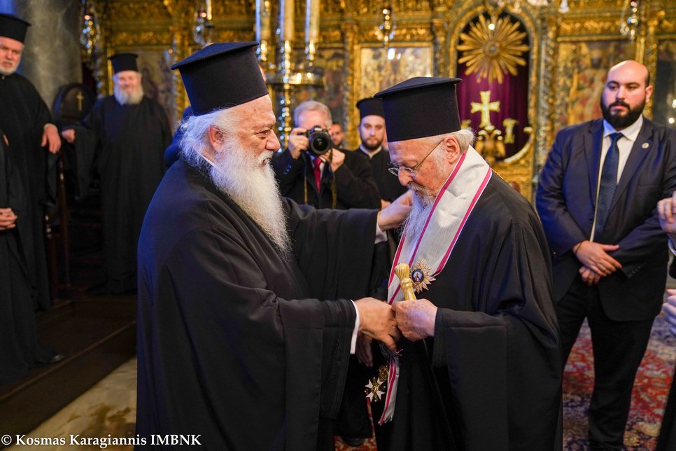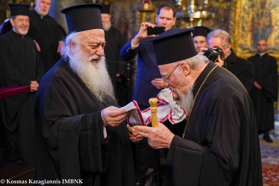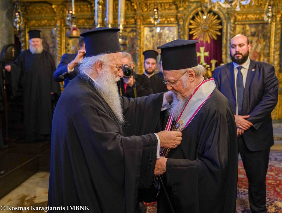 Ο Παναγιώτατος αφού ευχαρίστησε τον Σεβασμιώτατο για την τιμητική διάκριση αλλά και για την προσήλωση του στην Μητέρα Εκκλησία απηύθυνε πατρικούς λόγους και ευχές.