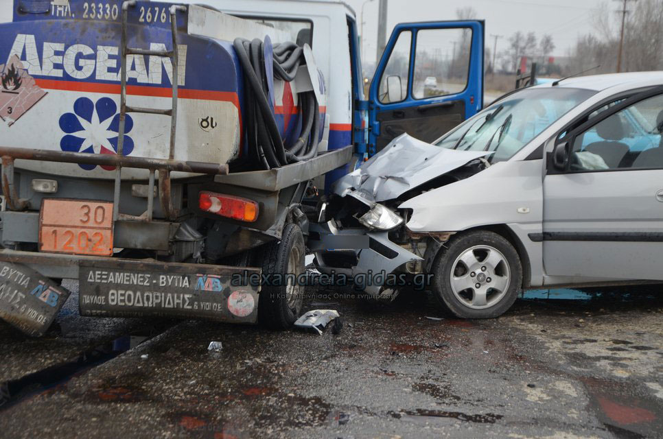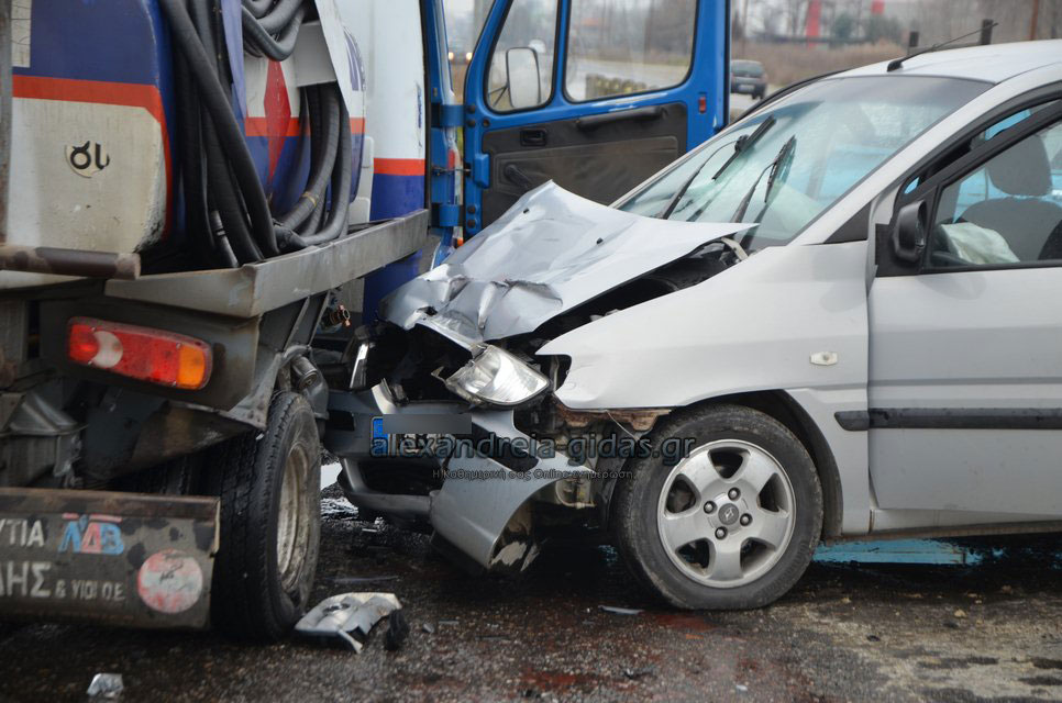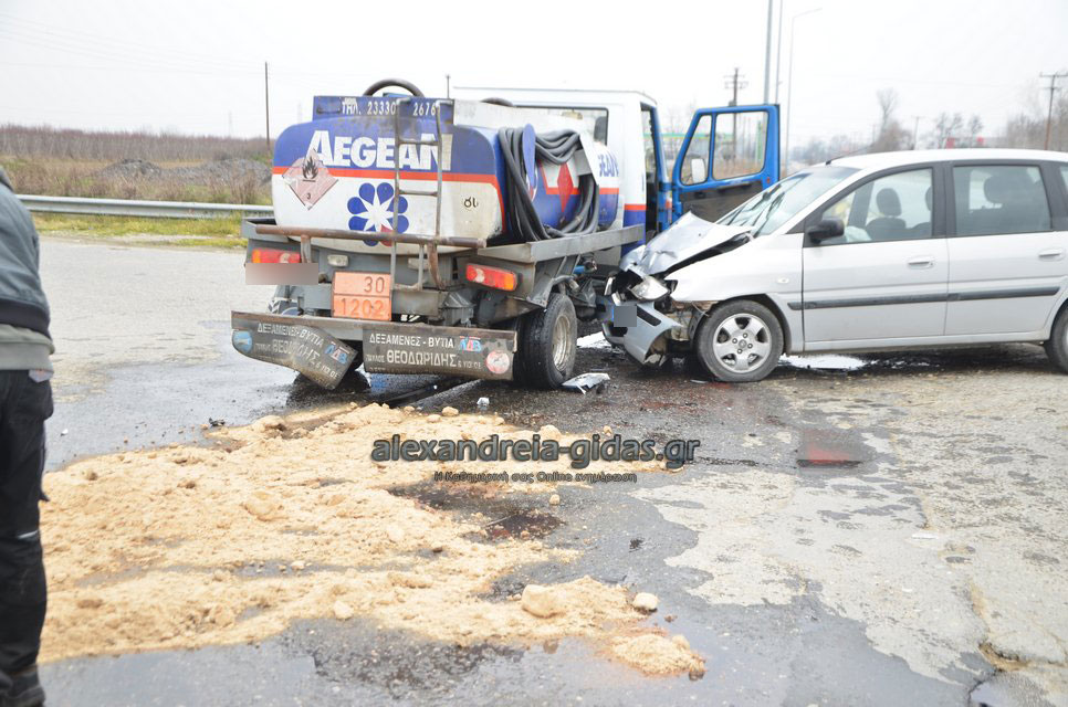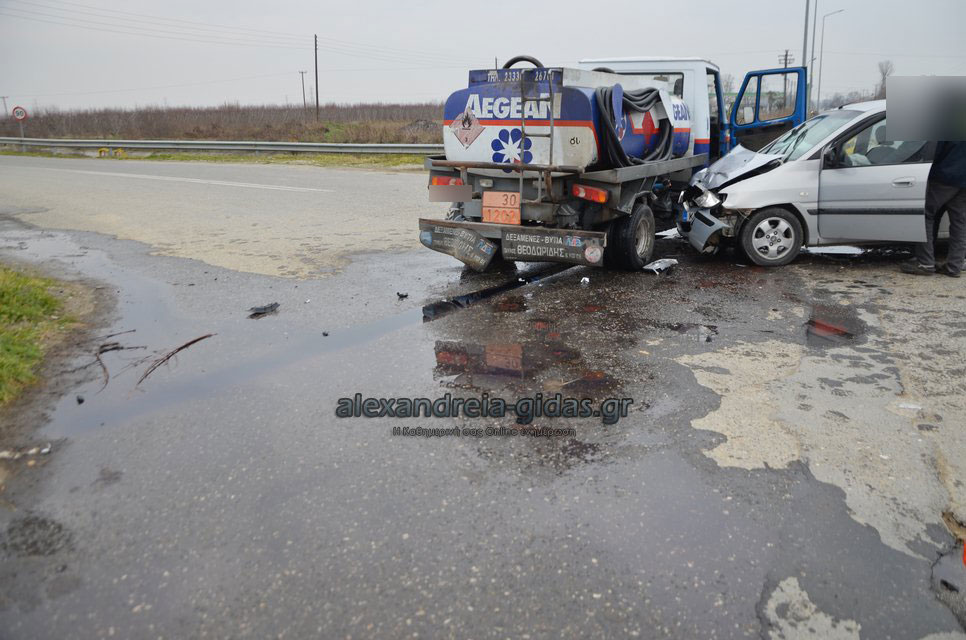 ΤΩΡΑ: Τροχαίο έξω από την Αλεξάνδρεια – σύγκρουση βυτίου με Ι.Χ.