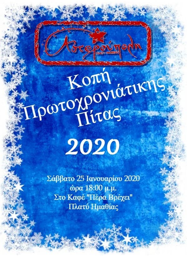 Την κοπή της Πρωτοχρονιάτικης Πίτας θα πραγματοποιήσει η ΑΣΤΕΡΟΥΠΟΛΗ.