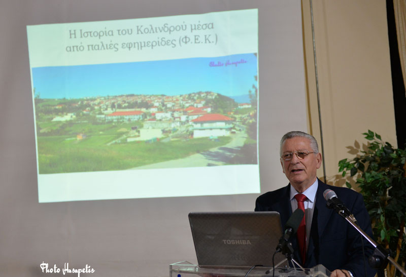 Την ιστορία του Κολινδρού, της ιστορικής και πολύ όμορφης κωμόπολης της Πιερίας, παρουσίασε την Κυριακή 19 Ιανουαρίου 2020, στην αίθουσα εκδηλώσεων του 1ου Δημοτικού Σχολείου Κολινδρού, ο εκπαιδευτικός, ιστορικός και συγγραφέας κ. Ιωάννης Παπαλαζάρου μέσα από παλιές εφημερίδες (Φ.Ε.Κ.), από τις αρχές του 20ου αιώνα μέχρι σήμερα.