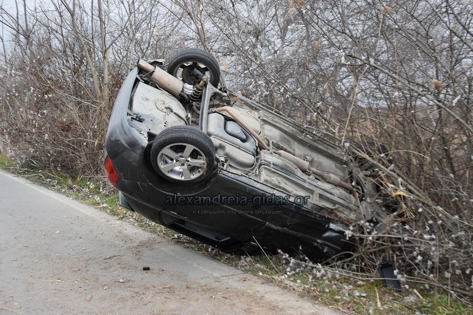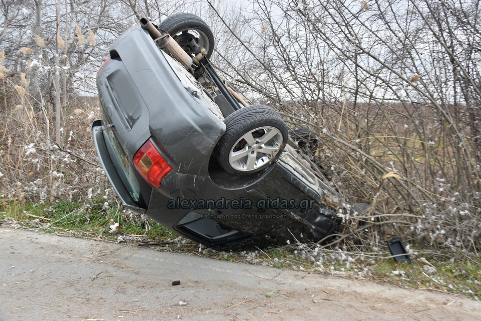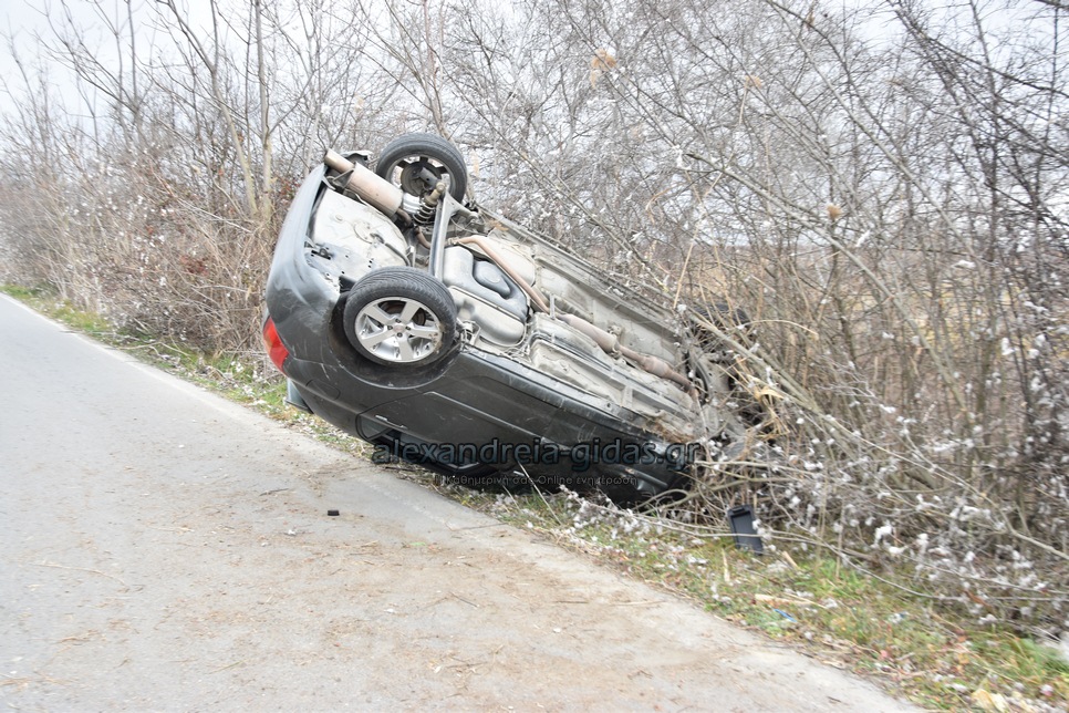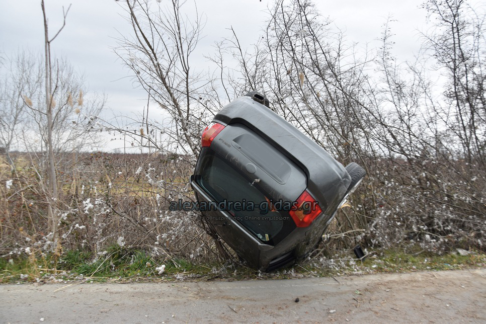Ευτυχώς τα κλαδιά παράπλευρα του δρόμου συγκράτησαν το όχημα πριν αυτό φύγει στο διπλανό κανάλι.