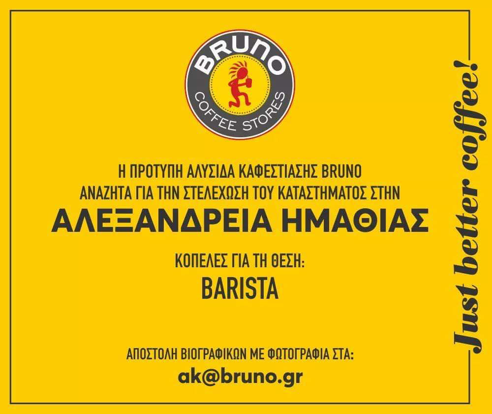 Το νέο BRUNO BOX που θα λειτουργήσει σε λίγες ημέρες στην πόλη της Αλεξάνδρειας (κλικ ΕΔΩ), προσφέρει θέσεις εργασίας και ζητά: