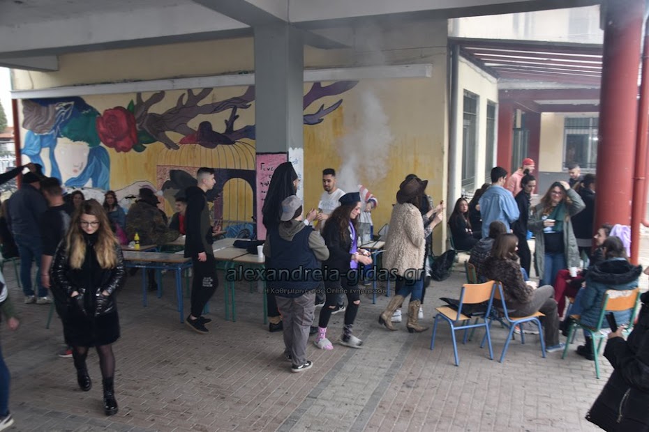 Δεν τους πτόησε ο καιρός! Μαθητές και καθηγητές “τσίκνισαν” υπό βροχή στο 1ο ΓΕΛ Αλεξάνδρειας
