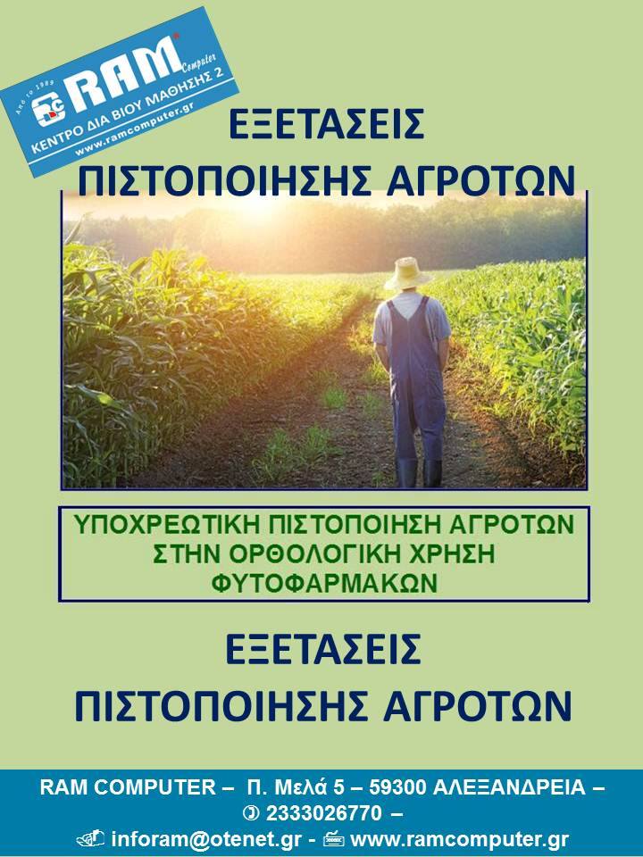 Φορέας Κατάρτισης και Κέντρο Εξετάσεων χορήγησης πιστοποιητικού γνώσεων ορθολογικής χρήσης των γεωργικών φαρμάκων