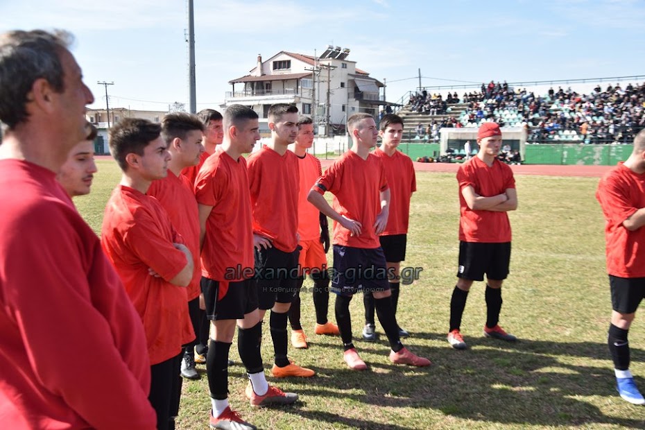 Το 1ο Γενικό Λύκειο Αλεξάνδρειας και το ΕΠΑΛ Αλεξάνδρειας αναμετρήθηκαν στον δεύτερο ημιτελικό των σχολικών αγώνων ποδοσφαίρου στο δημοτικό στάδιο Αλεξάνδρειας το πρωί της Δευτέρας 24 Φεβρουαρίου 2020.