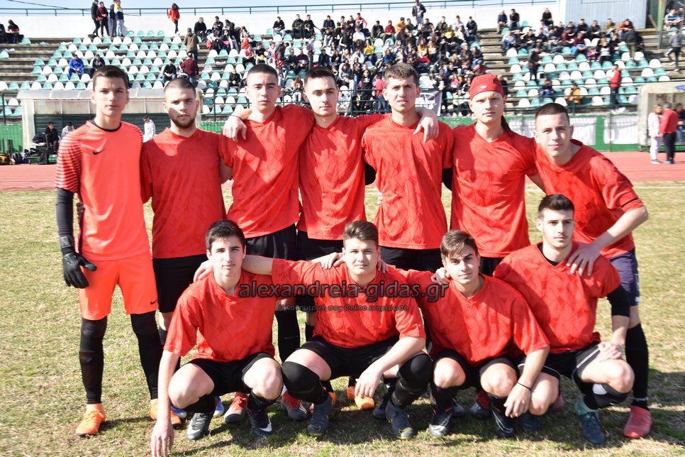 Νικητές, οι ποδοσφαιριστές του 1ου ΓΕΛ Αλεξάνδρειας με σκορ 2-1.