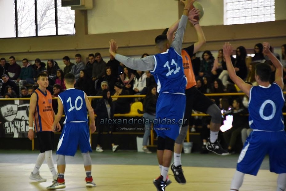 Στα πλαίσια του σχολικού πρωταθλήματος μπάσκετ, το πρωί της Παρασκευής 28 Φεβρουαρίου 2020 το 1ο ΓΕΛ Αλεξάνδρειας αγωνίστηκε με το 2ο ΓΕΛ Αλεξάνδρειας.