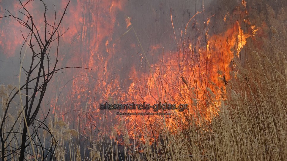 Μεγάλη φωτιά ξέσπασε σε μεγάλη έκταση με χόρτα και καλαμιές ανάμεσα στην Εγνατία Οδό και τον Λουτρό του δήμου Αλεξάνδρειας λίγο πριν την Ι.Μ. Αγίας Κυριακής.