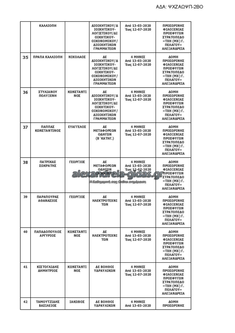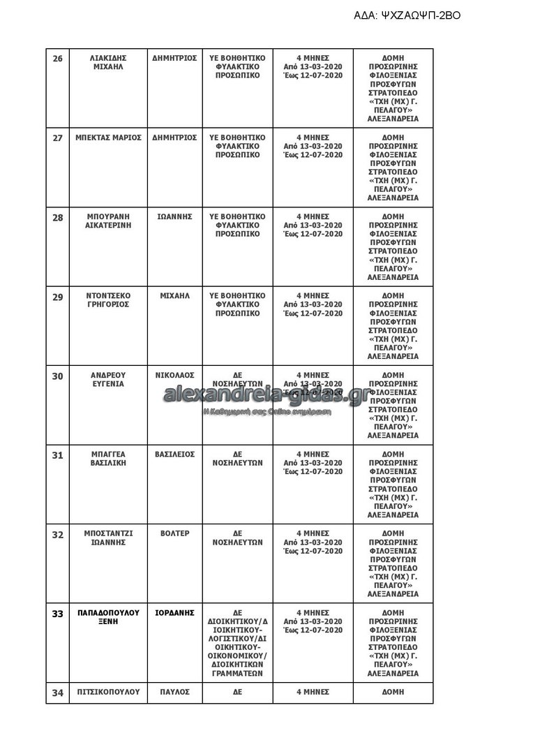 Οι προσλήψεις είναι τετράμηνης διάρκειας.