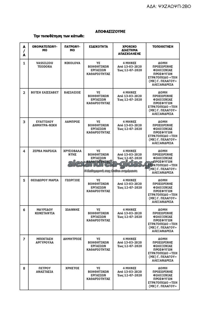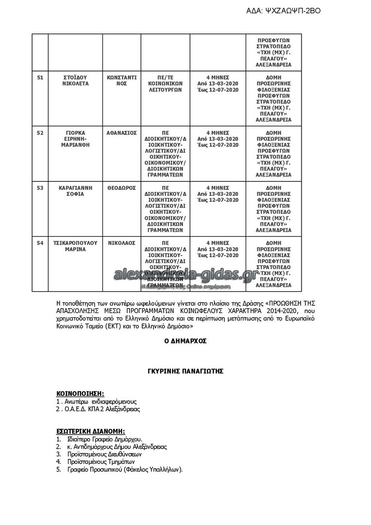 54 προσλήψεις μέσω προγραμμάτων Κοινωφελούς χαρακτήρα έκανε ο δήμος Αλεξάνδρειας στο Κέντρο Φιλοξενίας προσφύγων στην Αλεξάνδρεια.