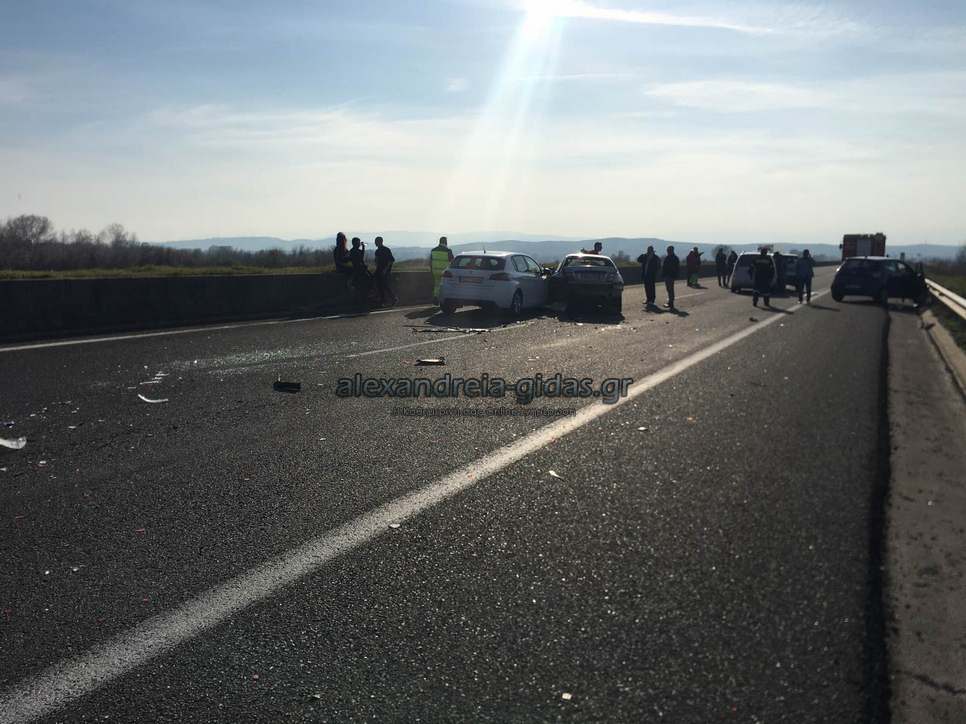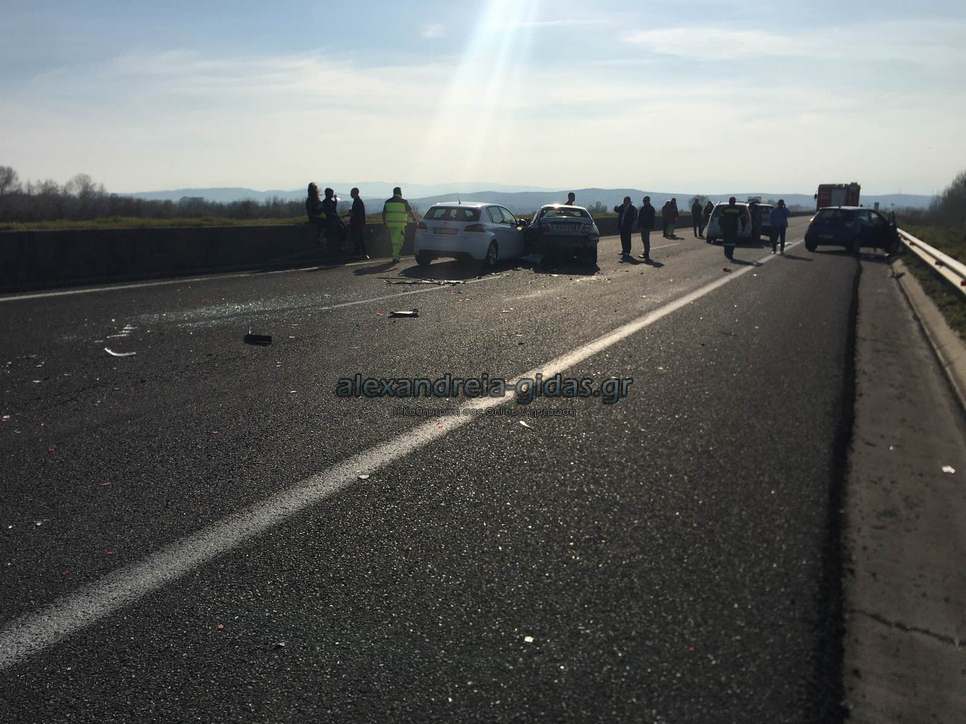Συγκεκριμένα, στο ύψος του Πλάτανου του δήμου Αλεξάνδρειας προκλήθηκε καραμπόλα 8 αυτοκινήτων.