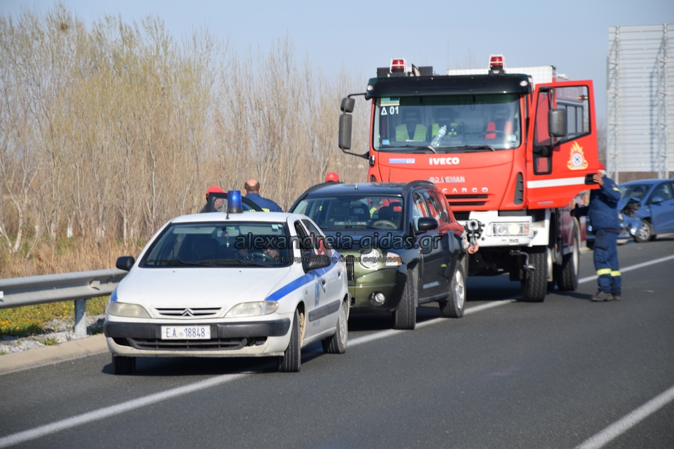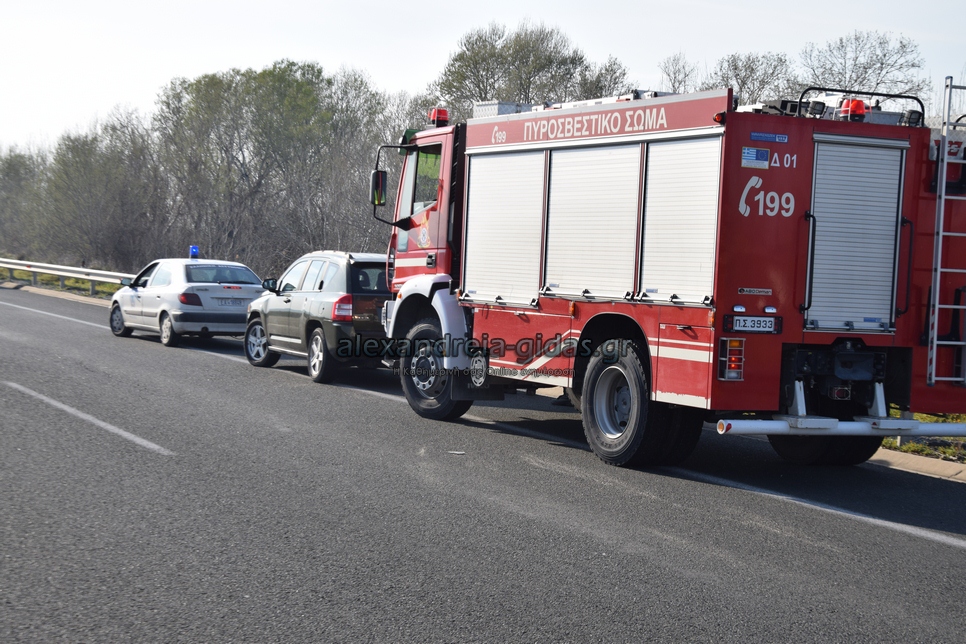 Στο σημείο έσπευσαν πυροσβεστικές υπηρεσίες Αλεξάνδρειας, Βέροιας και Σίνδου, αστυνομία και το ΕΚΑΒ.