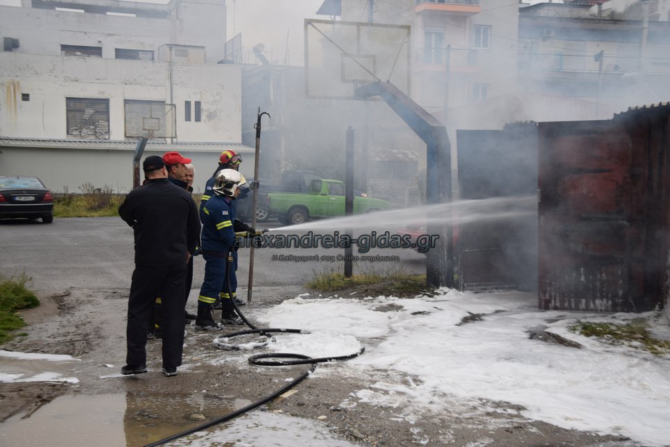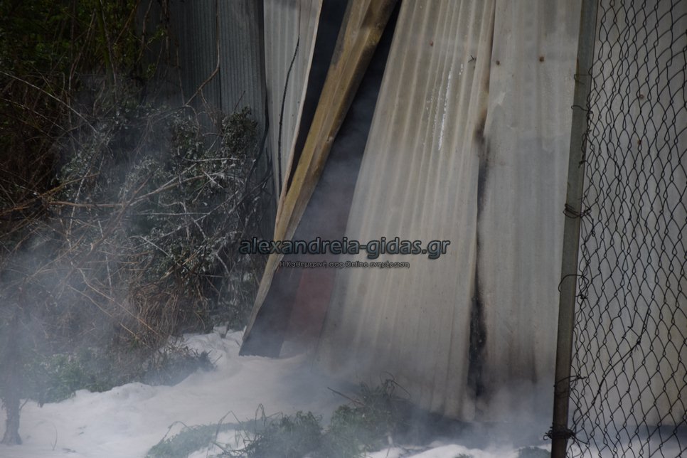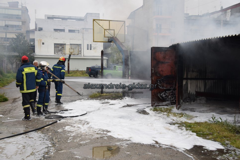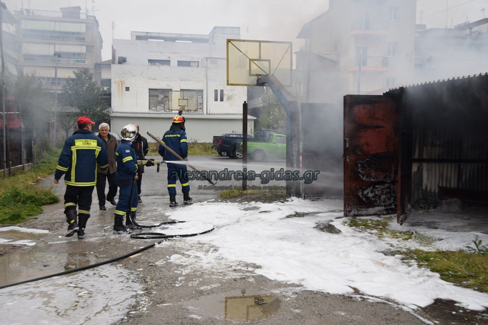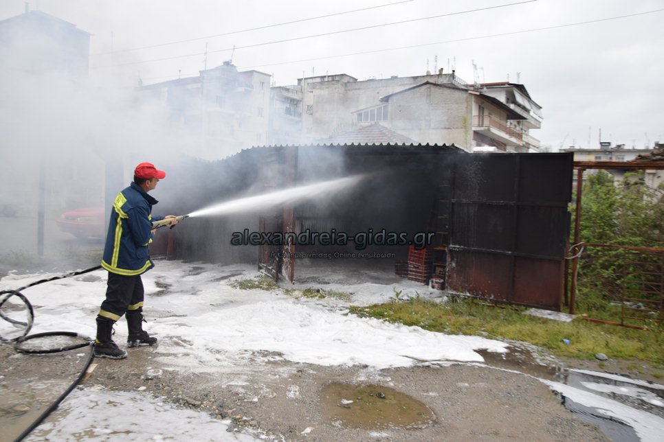 Φωτιά εκδηλώθηκε σε υπόστεγο γκαράζ στην πόλη της Αλεξάνδρειας το απόγευμα της Πέμπτης 26 Μαρτίου 2020.