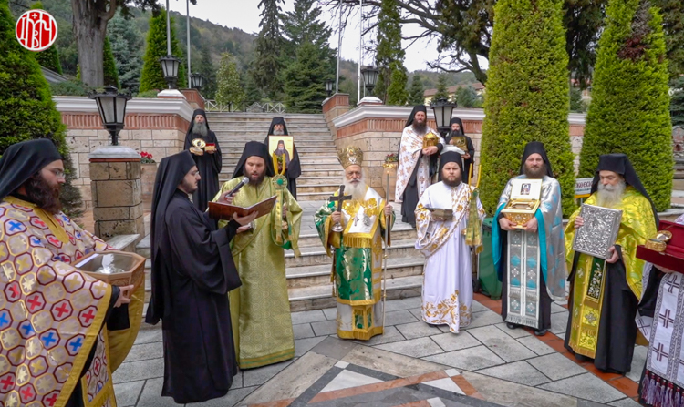 Λιτανεύτηκαν τεμάχιο Τιμίου Ξύλου, οι Ιερές Εικόνες της Παναγίας Δοβράς, της Παναγίας Οδηγήτριας και του Αγίου Παϊσίου με τον σταυρό του, τα Ιερά Λείψανα των Αγίων Ιωάννου του Προδρόμου, Αποστόλου Παύλου, Ανδρέου του Πρωτοκλήτου, Λουκά του Ευαγγελιστού, Βασιλείου του Μεγάλου, Γρηγορίου του Θεολόγου, Ιωάννου του Χρυσοστόμου, Αθανασίου του Μεγάλου, Γρηγορίου του Παλαμά, Θεωνά Αρχιεπισκόπου Θεσσαλονίκης, Παρθενίου Επισκόπου Λαμψάκου, Νεκταρίου Επισκόπου Πενταπόλεως, Λουκά Αρχιεπισκόπου Συμφερουπόλεως, Ιγνατίου του Θεοφόρου, Δημητρίου του Μυροβλήτου, Παντελεήμονος του Ιαματικού, Θεοδώρου του Τύρωνος, Βαβύλα, Χαραλάμπους του Ιερομάρτυρος, Κοσμά του Αιτωλού, Γεωργίου του εν Ιωανίννοις, Αργυρής, Αντωνίου του Βεροιέως, Δαβίδ του εν Θεσσαλονίκη, Σεραφείμ του Σάρωφ, Γεωργίου του Καρσλίδη, Παρθενίου του εν Κουδουμά Κρήτης, Αμφιλοχίου του εν Πάτμω, Νικηφόρου του Λεπρού, Σοφίας της Κλεισούρας και φιαλίδιο με αίμα του Οσίου Πορφυρίου.