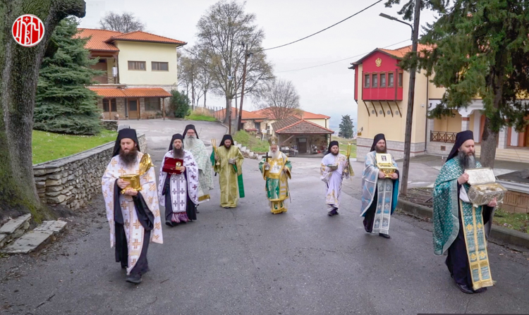 Την Κυριακή 29 Μαρτίου το πρωί μετά το πέρας της Αρχιερατικής Θείας Λειτουργίας που τελέστηκε στο καθολικό της Ιεράς Μονής Παναγίας Δοβρά Βεροίας, πραγματοποιήθηκε υπό της αδελφότητος, στο προαύλιο χώρο της Ιεράς Μονής, κεκλεισμένων των θυρών, Ιερά Λιτανεία των χαριτοβρύτων λειψάνων και των Ιερών Εικόνων που φυλάσσονται στην Ιερά Μονή.