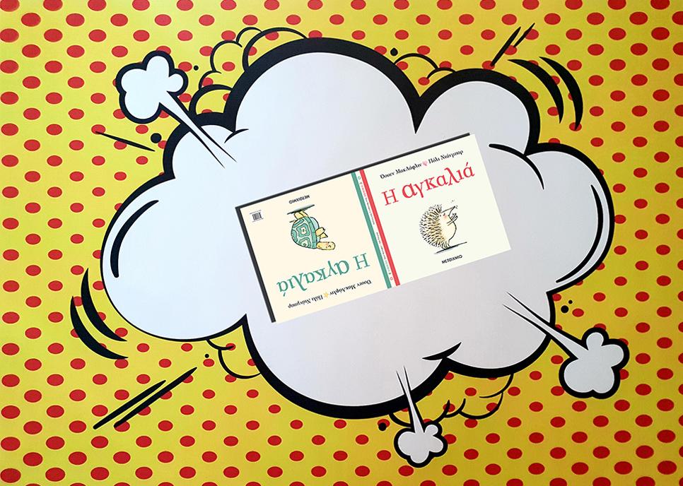Μια τρυφερή ιστορία αλλά καθόλου συνηθισμένη. Το κύριο χαρακτηριστικό του βιβλίου είναι πως είναι διπλό. Οι μικροί αναγνώστες παρακολουθούν τον σκαντζόχοιρο να ψάχνει για την αγκαλιά που χρειάζεται και γυρνώντας το βιβλίο παρακολουθούν την χελώνα στην δική της αναζήτηση αγκαλιάς. Με σημαντικότερη στιγμή στο κέντρο του βιβλίου. Το ελάχιστο κείμενο συνδυάζεται αρμονικά με την υπέροχη εικονογράφηση του βιβλίου. Τέλος το λευκό φόντο βοηθάει τα παιδιά να εστιάζουν στα ζωάκια του δάσους και τα συναισθήματα του προσώπου τους. Μια ιστορία που θα κεντρίσει το ενδιαφέρον των μικρών αναγνωστών.
